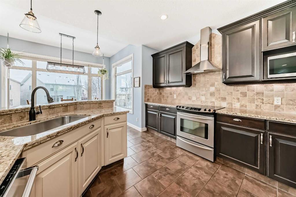 Welcome to this BEAUTIFULLY MAINTAINED custom Jensen-built home tucked into, a quiet, friendly cul-de- sac in the coveted Lower part of Sunset Ridge- a two time Best seller community. Step through the tall, light- filled entry where an expansive window opens the entire space. The main floor unfolds with an open, flowing layout surrounded by vast floor-to ceiling windows and 9-ft ceiling ceilings that fill the room with natural sunlight from morning thru evening. The kitchen features granite counter tops, a raised eating bar and spacious workspaces. From the kitchen a large walk-thru pantry with abundant shelving leads to a tucked-away mudroom and laundry area. The living room is anchored by a cozy gas fireplace and wide south-facing vistas towards the backyard. A dedicated main-floor office / formal dining room and a 2 pce bathroom completes the main floor.Upstairs, FOUR generous bedrooms offer remarkable versatility. The custom primary suite is a true retreat with tall vaulted ceilings, oversized windows framing its sunrise views. The ensuite includes a corner soaker tub/walk-in closet with smart built-ins. The additional bedrooms easily accommodate queen beds. A 5-pce bathroom completes the upper level. Epic mountain views from the back bedrooms. The professionally finished Daylight Lower level bright and open thanks to oversized windows and 9 ft ceilings. This level includes a generous wet bar with granite counter tops, additional bedroom / 4 pce bathroom. The large family room for entertainment with a gas fireplace. Double attached garage. SPACIOUS YARD. Step outside to over 400 sq ft of deck space, complete with a beautiful wooden pergola, the perfect vantage point for sunsets, mountain silhouettes, and family gatherings. The landscaped, gated yard features mature trees / a Rundle Stone Pad for a firepit. A PRIZED + PRIME LOCATION, with immediate access to Hwy-22 /Easily walk or cycle to the Ranchehouse paths and even Glenbow Pathway system/ playgrounds / outdoor fitness, and the upcoming community centre. This home EXCEPTIONAL location puts it walkable to Ranchview school (K-8) St Timonthys High School and the 6 acre pond, park and paths. Steps up the street you have a cozy community hub with a daycare/country market, pub, gas station, wine & spirit store, pharmacy, dental, medical services. This home is priced to sell.