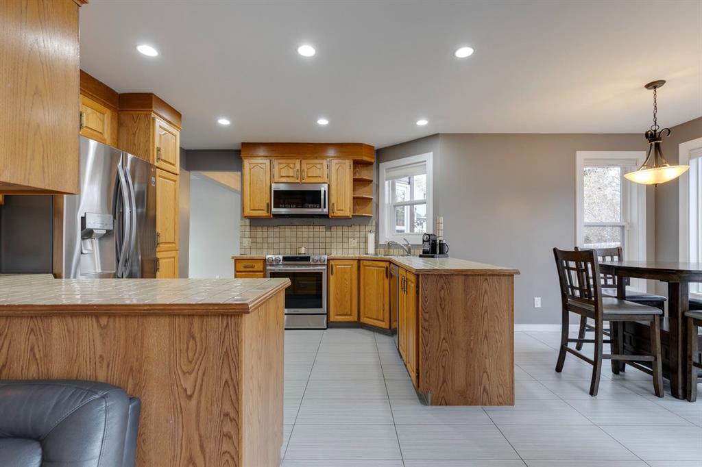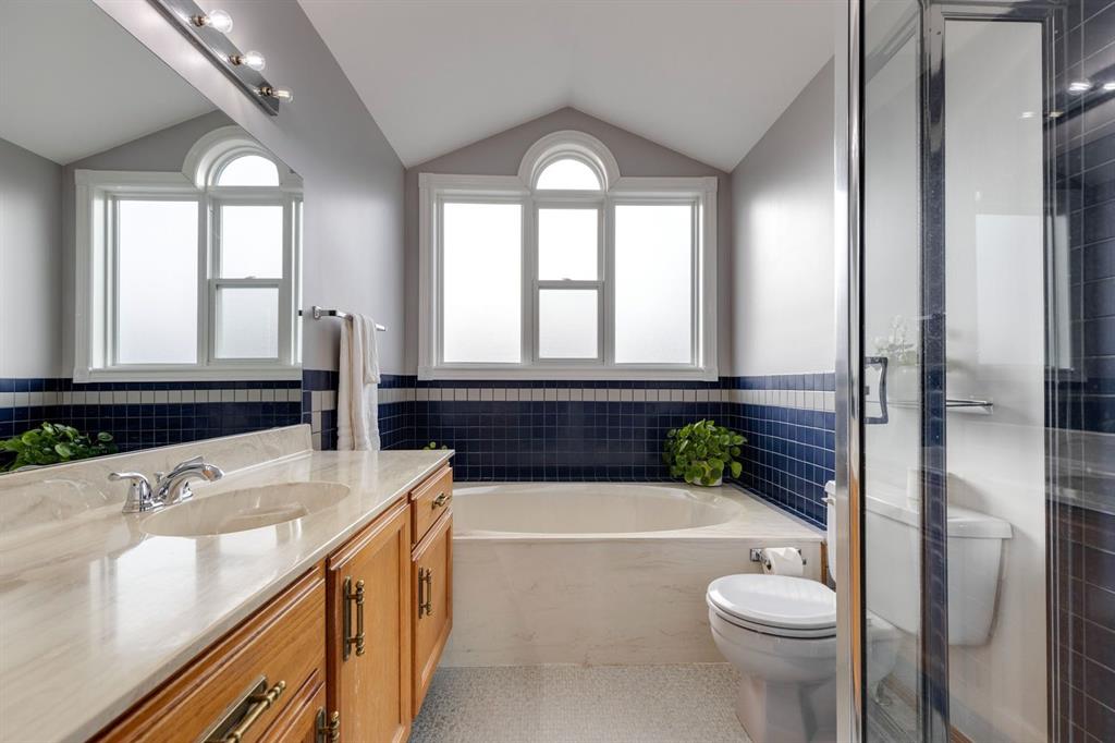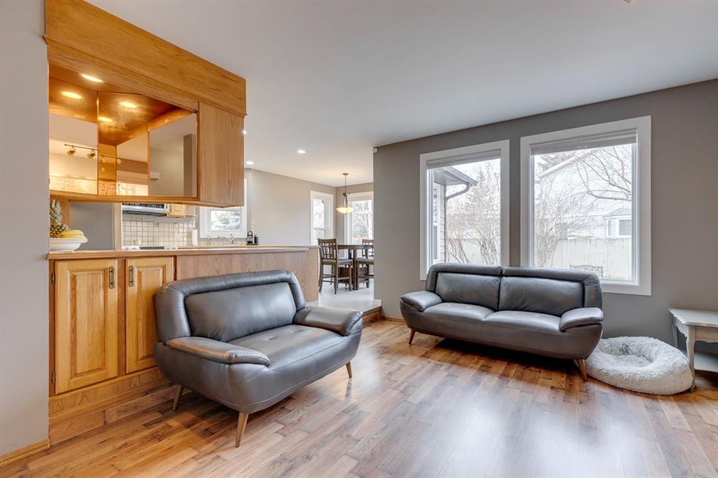 Welcome to this beautifully renovated 4 bedroom, two storey, Woodbine family home! Vaulted ceilings soar to above in a huge living room with expansive windows, while the formal dining room is both spacious and cozy. The family room is warmed by wood burning fireplace and is adjacent to the kitchen with tons of cabinetry & counter space and updated laminate flooring. Step out to a sunny deck & paved patio, perfect for dining alfresco in warmer weather. Upstairs, the open vaulted loft overlooks the main level, and you will find 3 good sized bedrooms including the master retreat with its own private ensuite with jetted tub. The newly renovated fully developed basement offers a full bath with in-floor heating, versatile rec room with wet bar and a fourth bedroom both with brand new carpet. NEW HIGH EFFICIENCY FURNACE, NEW WINDOWS, Roof recently redone, Epoxy floor in the garage. The backyard features mature landscaping & privacy fencing and a freshly poured exposed aggregate patio. Plenty of room to play and relax in this outstanding home. Walking distance from the school and Fish Creek Park, the new TAZA Buffalo Run Shopping centre (The West COSTCO) Come see it today!