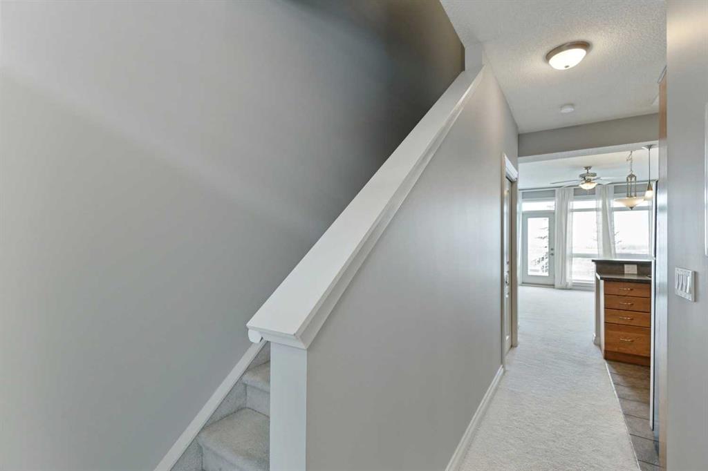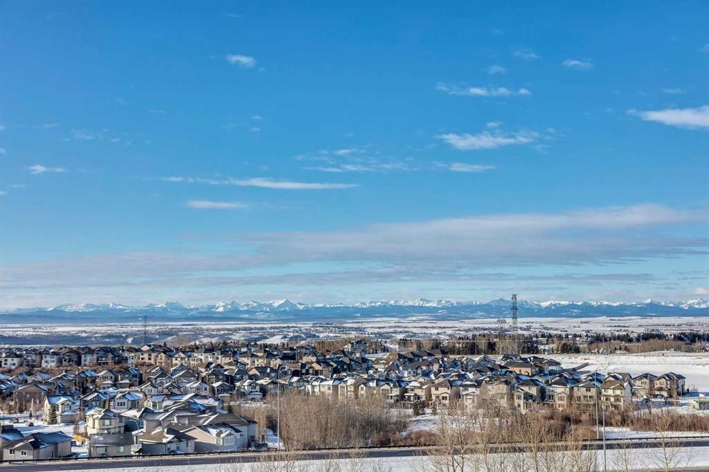 1,000 Sq. Ft., Two-Storey Condo Offering 2 Bedrooms and 2.5 Bathrooms in Desirable Rocky Ridge. Flooded with Natural light, this Spacious home features 9 Ft ceilings, fresh paint, and Panoramic Mountain Views from both levels. The Kitchen offers Oak cabinets, Under cabinet lighting, a Breakfast bar, Stainless Steel Appliances, plus a Newer Microwave & (Black) Bosch dishwasher. The Living/Dining area opens onto a Large balcony—Perfect for BBQs or enjoying your morning coffee. Upstairs, the primary bedroom boasts Mountain views and a 3-piece ensuite. The second bedroom also enjoys its own 3-piece ensuite, featuring an oversized shower. Convenient upper-level laundry completes this level. This unit comes with a Titled Underground Parking stall and a 4′ x 6′ storage cage. The complex has its own gym (fitness) centre and plenty of visitor parking. Fantastic location with easy access to Crowchild Trail and Stoney Trail, making mountain getaways or downtown commutes a breeze. The Blue Sky complex is surrounded by walking paths, greenspace, shopping, and is just a short walk to the Tuscany LRT station.