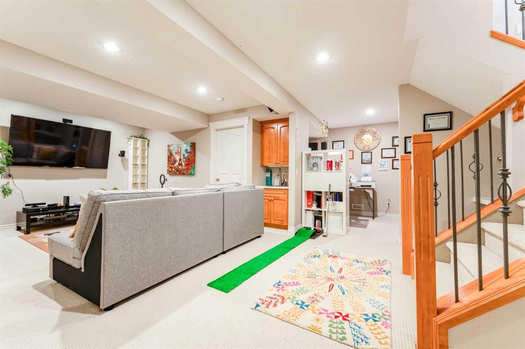 Welcome to 14 Bridlerange Circle SW! Step into this BEAUTIFULLY UPGRADED and SPACIOUS 2-storey home offering 2,945.33 sq ft of total living space, including a fully developed basement—thoughtfully designed for growing families. From the moment you arrive, the charming curb appeal, enhanced by stone accents, vinyl siding, and upgraded front railings, along with a double attached garage, sets the tone for what’s inside. The welcoming foyer opens into a bright, open-concept main floor featuring 9-FOOT CEILINGS and rich HARDWOOD FLOORING that flows throughout the main living areas, creating an airy and elegant feel. The spacious living room is anchored by a beautifully upgraded DOUBLE-SIDED FIREPLACE with modern tile surround and mantle, seamlessly connecting to the dining area and creating a warm, inviting atmosphere for both everyday living and entertaining. The heart of the home is the stunning fully UPGRADED KITCHEN, showcasing refinished cabinetry, stylish backsplash, upgraded countertops, a raised eating bar, and a built-in wine bar, perfectly blending functionality and style. A BRAND-NEW REFRIGERATOR adds even more value. The adjacent dining area is ideal for hosting family dinners and special occasions. A 2-piece bathroom, main floor laundry, and direct access to the double attached garage add everyday convenience. Step outside to your newly built 10’ x 20’ deck with durable steel railings, complemented by a spacious private backyard—perfect for summer BBQs, entertaining, or simply relaxing. Enjoy evenings under the OUTDOOR SMART CEILING LIGHTING SYSTEM, adding both ambiance and modern convenience to your outdoor space. Upstairs, you’ll find a rare and highly desirable bonus family room—perfect for movie nights, a kids’ play area, or a second living space. The UPGRADED STAIRCASE with modern railings adds a stylish architectural touch. The primary retreat offers a peaceful escape, complete with a walk-in closet and a luxurious 5-piece ensuite featuring double sinks, a soaker tub, and a separate shower. Two additional generously sized bedrooms and a full 4-piece bathroom complete the upper level—perfect for a growing family. The FULLY DEVELOPED BASEMENT expands your living space with a large recreation room featuring a wet bar—ideal for entertaining or family fun nights. You’ll also find two additional bedrooms, a home office, and a 3-piece bathroom, offering incredible flexibility for guests, teens, or multi-generational living. Located in the highly sought-after community of BRIDLEWOOD, this home offers a family-friendly lifestyle with UNBEATABLE CONVENIENCE: walking distance to parks, playgrounds, and pathways, THREE EXCELLENT SCHOOLS and daycare options, quick connections to major routes for commuting, and overall a safe, welcoming neighborhood. With its thoughtful upgrades, modern finishes, and expansive living spaces, this home delivers exceptional value and comfort for today’s growing family.