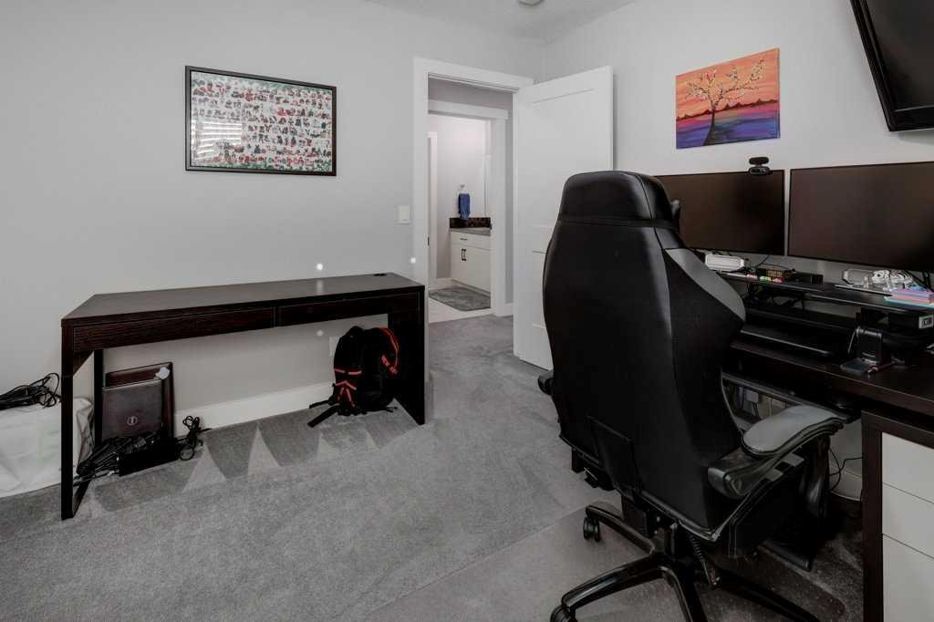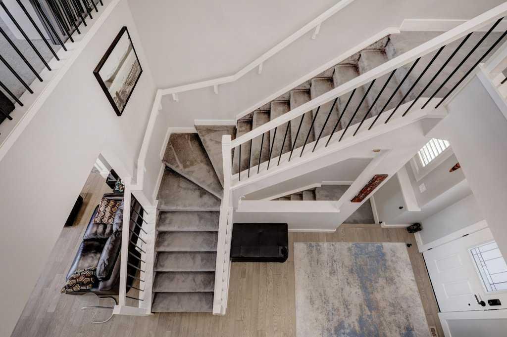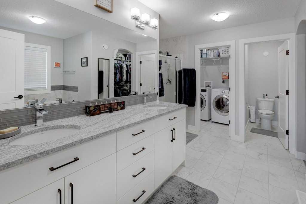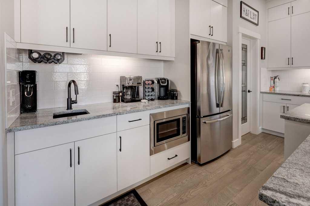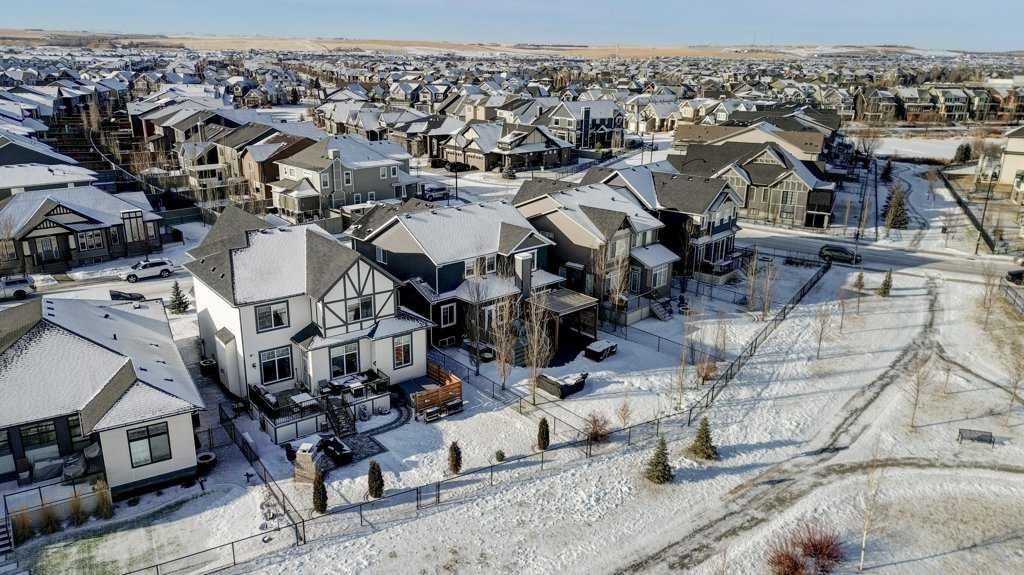 This exceptional 5-bedroom home offers over 3,700 sq. ft. of beautifully developed luxury living space, thoughtfully upgraded throughout and situated on the second-largest lot on the street backing onto Greenspace, creating an impressive presence and enhanced functionality. Built by McKee Homes with the upgraded Signature Design package, this residence combines timeless finishes with modern comfort. The main floor features 10’ ceilings, rich oak hardwood flooring, knock-down ceilings, and elegant rounded wall corners, creating a refined yet welcoming atmosphere. Triple-pane vinyl windows enhance energy efficiency and year-round comfort. The chef-inspired kitchen is both stylish and highly functional, showcasing higher-end granite countertops, black granite sinks, and floor-to-ceiling maple cabinetry with soft-close hinges. A Gigantic Island seats 6 people comfortably and is amazing for entertaining quests. Thoughtful storage upgrades include extra-deep pot and pan drawers, garbage and recycling pull-outs, extended island cabinetry for cookie sheets and cutting boards, tip-out trays, a second prep sink, and under-cabinet lighting. Premium appliances include a Gas range with double oven, Bosch dishwasher, and a GE Profile refrigerator with internal water dispenser. A matching granite wet bar in the fully developed basement continues the home’s upscale design. All bathrooms feature granite countertops, upgraded faucets and accessories, comfort-height energy-efficient toilets with slow-close lids, and tip-out trays. The main (kids’) bathroom includes a double vanity, while the primary ensuite offers a relaxing jetted tub. The builder-developed basement seamlessly matches the rest of the home and includes a wet bar, plush carpeting with Smart Cushion underlay and pet-protection layer, and generous living and entertaining space. Comfort and efficiency are paramount with two furnaces (separate systems for main/upper levels and basement), a heat recovery ventilation system, and a large air-conditioning unit serving the main and upper floors. Insulation has been upgraded to R22 on exterior walls, R20 in the garage, and R34 in the attic. The extended oversized garage includes a heater, while the home is wired for a hot tub. An exterior shed is built into the home with matching siding, a concrete slab, and electrical—meeting HOA requirements while offering exceptional storage. The beautifully manicured backyard is designed for outdoor living, featuring a large deck, hand-laid stone patio, outdoor fireplace, and privacy fencing ideal for a future hot tub (hot tub not included). Underground Sprinklers provide seasonal convenience watering your lawn! Power roller blinds on the rear of the home and wood shutters at the front complete the window treatments. With its extended width design, additional office space, premium finishes, and standout lot size, this home delivers luxury, efficiency, and everyday practicality in a truly impressive package.