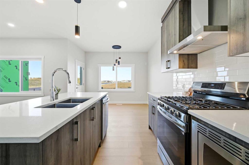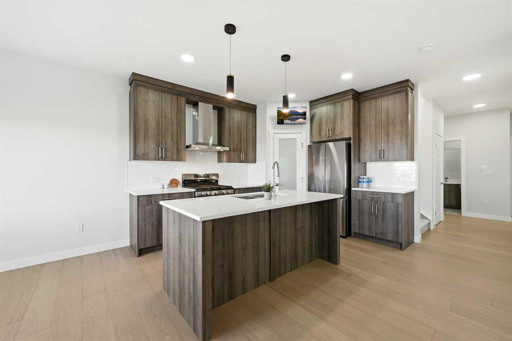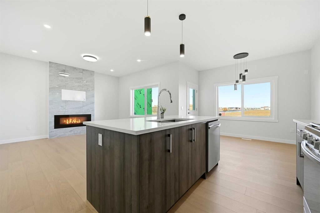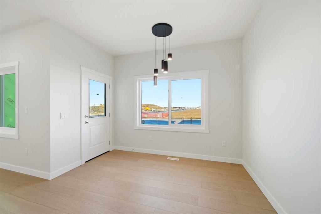 Welcome to 14 Cornerstone Parade NE, a brand-new 1,924 sq. ft. home located in the prime community of Cornerstone, backing directly onto green space with a future high school site—an exceptional setting for families and long-term value. This beautifully designed home features a modern open-concept main floor with a spacious living area, a double door entrance to main-floor office/or den, that flows seamlessly into a well-appointed kitchen and dining space, perfect for everyday living and entertaining. A functional foyer and convenient two-piece bathroom complete the main level. The upgrade list includes: fire place in living room, gas stove, chimney hood, cabinets to ceiling height, gas line garage, plumbing rough ins in garage, iron railing, big windows. Upstairs, the expansive primary bedroom offers a true private retreat with a walk-in closet and a luxurious five-piece ensuite. Two additional generously sized bedrooms, a family room, a full four-piece bathroom, and a dedicated laundry room provide outstanding comfort and functionality for the entire household. All toilet seats have been upgraded, lighting package has been upgraded, plus titles in the washrooms. The home also includes an under-construction 2-bedroom legal basement suite, with framing already completed. Once finished, the property will offer a total of 5 bedrooms and 3.5 bathrooms, including a legal kitchen, separate side entrance. Additional highlights include an attached double garage, ample storage space, and the peace of mind that comes with owning a brand-new home, eliminating concerns associated with older properties. All seasonal work will be completed by the builder. Ideally located just a few minutes’ walk to Cornerstone Chalo Fresco Plaza, with bus service only 3–4 minutes away, and close to parks, schools, shopping, and major amenities—this is a rare opportunity to own a versatile, income-generating home in one of Calgary’s fastest-growing communities.