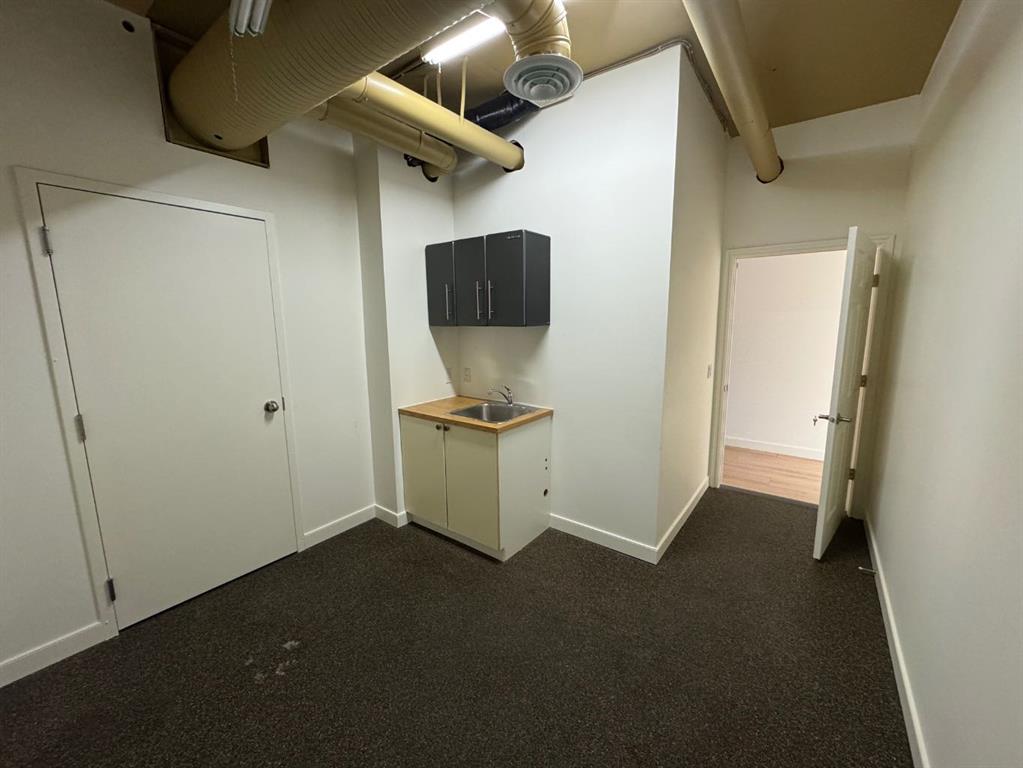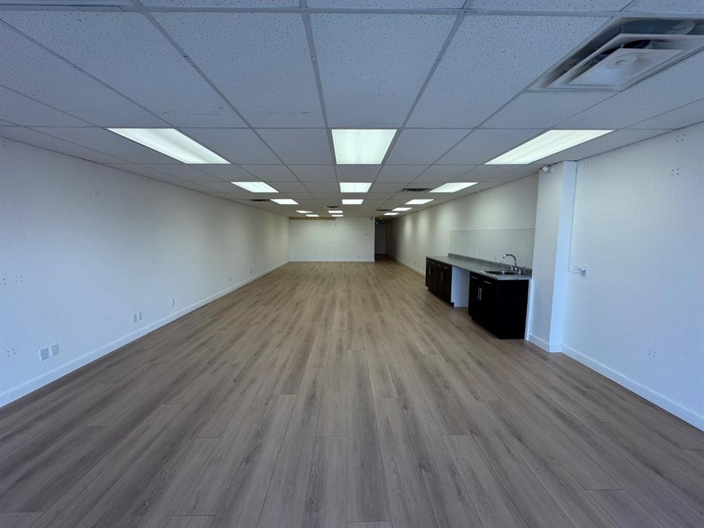 This bright and spacious 1,333 sqft unit features an open-concept floor plan, making it an excellent choice for an office, retail store, or other business ventures. Large windows flood the space with natural light, and the functional layout includes a kitchenette at the center, a private office at the back, and two washrooms. A rear door provides convenient access to the building’s back driveway.