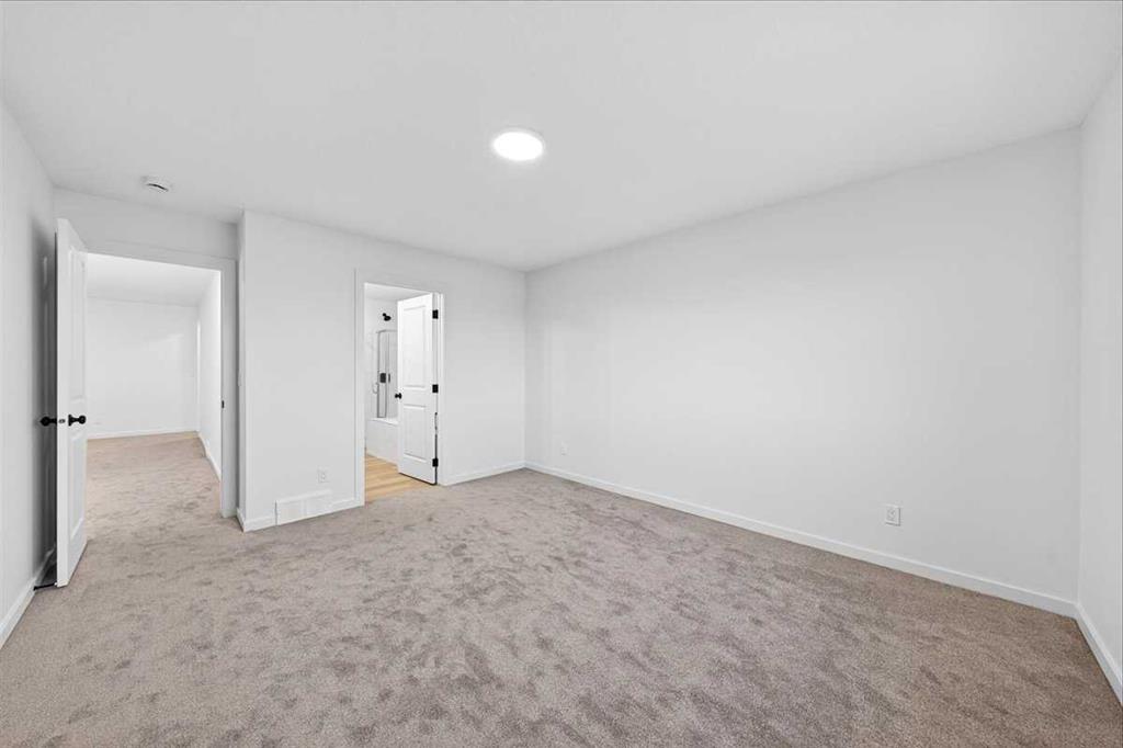 Upstairs, the bonus room is positioned between the primary and secondary bedrooms, because SEPARATION MATTERS when life gets loud. The primary bedroom is finished with a SOAKER TUB, GLASS SHOWER AND DOUBLE VANITY — clean, confident choices that don’t need explaining.