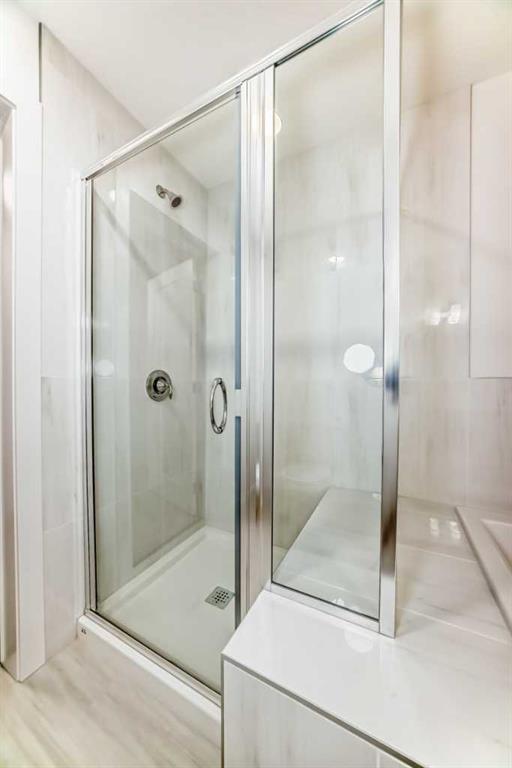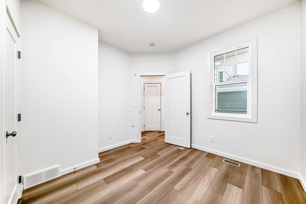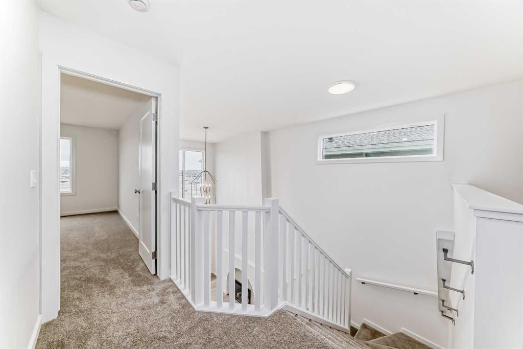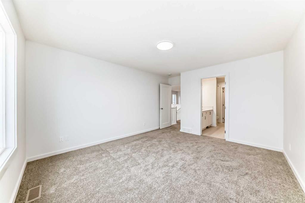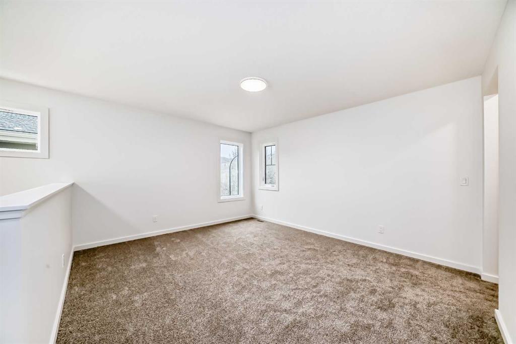 Upstairs, the BONUS ROOM lands right in the middle—and it’s not closed off. It looks down into the great room below and borrows all that natural light from the two-storey window wall. The primary bedroom is set apart, with a five-piece ensuite—SOAKER TUB, TILE SHOWER WITH A BENCH, dual sink vanity—and a walk-in closet that connects directly to the laundry room. No hauling baskets into the hallway. Secondary bedrooms? They each get their own walk-in closets.