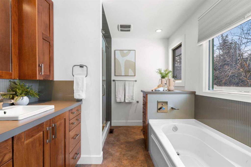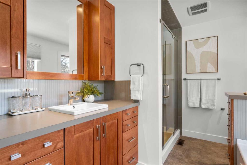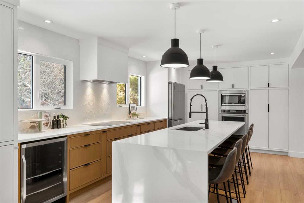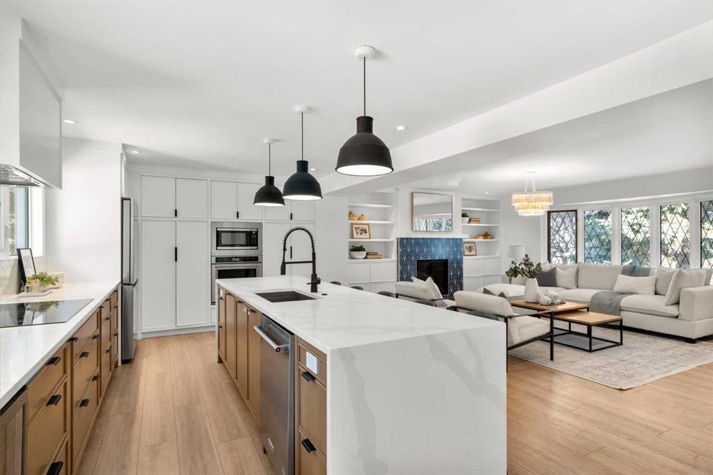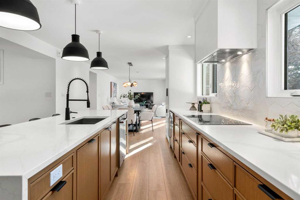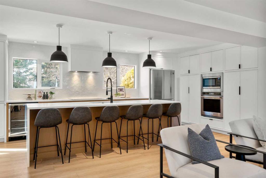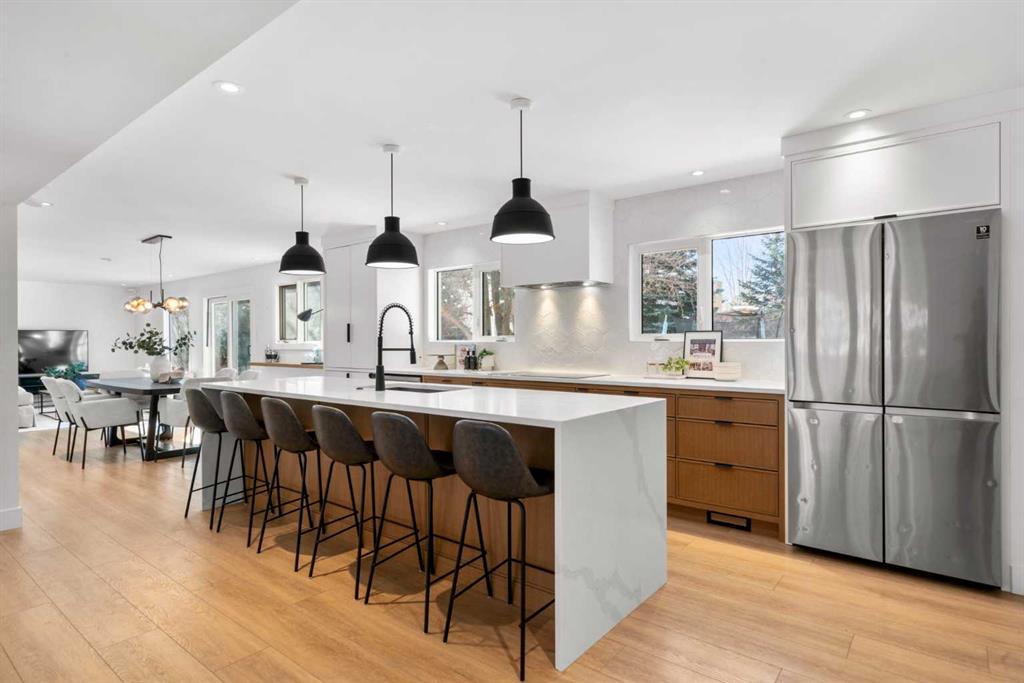 This is your opportunity to live in a spectacular, fully renovated two storey residence, located on a quiet, private cul-de-sac in the heart of Varsity, one of Northwest Calgary’s most prestigious family communities. Warm & welcoming, this extraordinary property offers an impressive 3,817 sq ft of living space (2,670 + 1,147), upgraded & designed for growing families who value space, comfort & convenience. Featuring 6 spacious bedrooms & 3.5 bathrooms, this bright, sunny home offers a functional open concept layout ideal for both everyday living & entertaining. The spacious living room is highlighted by a large bow window with adjacent fireplace, flowing seamlessly into a gourmet designer kitchen complete with Caesarstone countertops, a massive island with eating bar, modern backsplash & beautifully crafted two-toned cabinetry. Upgraded appliances, an induction cooktop & gleaming engineered wood floors complete this stunning space. The inviting family room opens through sliding doors to your expansive, private south facing backyard. Set on an oversized 70’ x 132’ lot, the outdoor space is a true oasis, featuring mature trees, low maintenance landscaping & ample room for children & hosting unforgettable gatherings. Upstairs, the home offers five generously sized bedrooms, all with hardwood flooring & excellent closet space. The owner’s retreat is a standout feature, complete with cork flooring, a large walk-in closet & sliding doors to a private upper deck, ideal for enjoying sunny south facing views. The beautifully renovated ensuite includes custom cabinetry, a soaker tub plus a tiled shower. A 5 piece family bathroom with double vanities & a separate, functional laundry space complete the upper level. The fully finished basement offers more flexibility with a large recreation room featuring plush carpeting, an spacious 6th bedroom, a renovated 4-piece bathroom, massive storage area, a hobby room & a massive mechanical area for additional storage or workshop. Highlights include a convenient side entrance mudroom with built-in lockers – perfect for busy families, a main floor powder room, central vacuum, updated windows, recent roof shingles, two new high-efficiency furnaces, AC, on-demand hot water & an oversized double attached garage. Located steps from playgrounds & nestled among mature trees, this home sits in a peaceful setting within a neighbourhood recognized as one of Calgary’s best. Varsity offers a master planned community atmosphere with an extensive network of quiet pathways, parks, tennis courts, soccer fields & multiple playgrounds. Access top rated schools: Marion Carson Elementary (Mandarin Immersion), Varsity Acres (French Immersion), St. Vincent de Paul, F.E. Osborne JR High & Sir Winston Churchill HS, UofC, University District, Brentwood Village, Northland Centre, the Brentwood LRT station. Foothills Medical Centre & Alberta Children’s Hospital are minutes away, along with countless parks, pathways & everyday amenities.