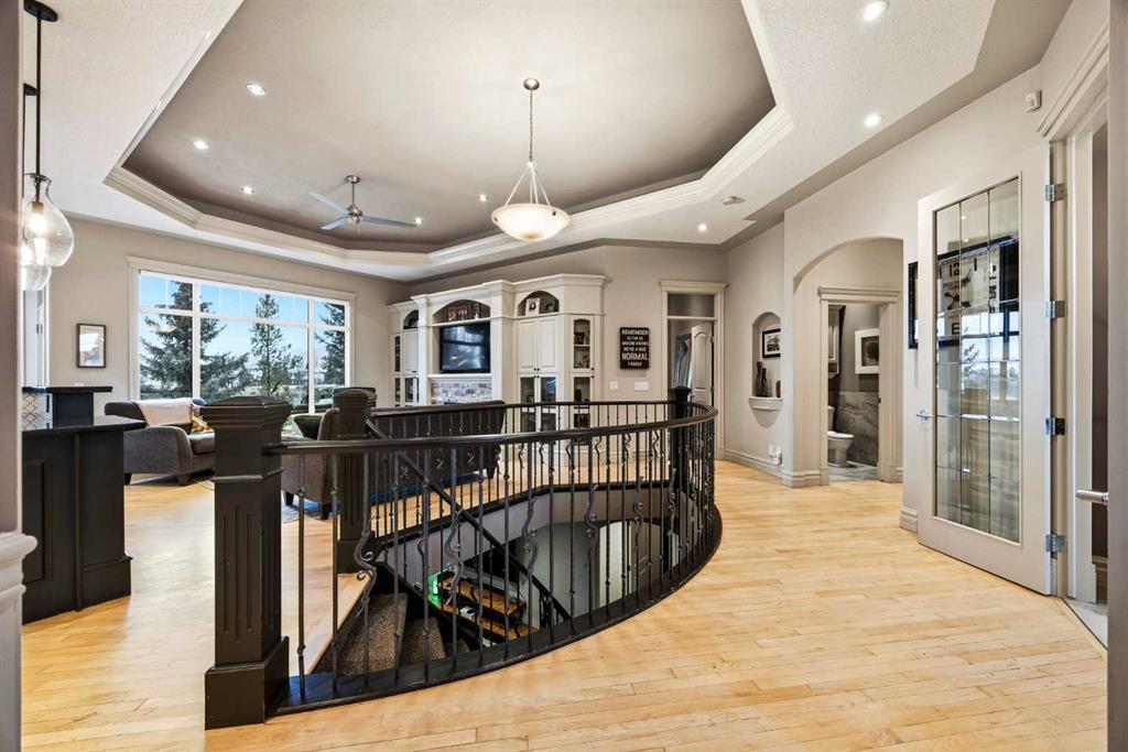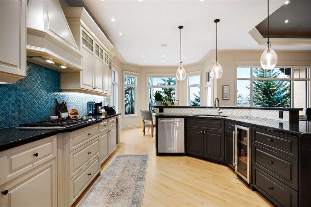 Discover the perfect blend of luxury, comfort, and breathtaking scenery in this beautifully updated Bungalow situated on the Prestigious Gleneagles Landing, boasting expansive mountain views, a fully finished walkout basement, and a triple attached garage. Offering an unparalleled living experience through a perfect main floor layout, with the kitchen, living room, and primary suite all designed to frame the stunning, elevated mountain vistas. This four bedroom home maximizes living space, and includes two and a half bathrooms which include a luxurious five-piece ensuite and a spacious four-piece bath on the lower level which hosts a relaxing steam shower. The chef’s kitchen features granite countertops, newly painted cabinetry, a custom backsplash, a Wolf gas range, and a new double Dacor wall oven. Enjoy open-concept living with luxury hardwood floors, a tray ceiling, and new lighting throughout. An open spiral staircase leads to the lower walkout level and serves as an elegant centrepiece of the home. The lower level offers unobstructed mountain views, and features a custom wet bar, a large living area, new carpet, a dedicated gym space with access to the beautifully landscaped and fenced backyard. Additional exterior features include underground irrigation, a private fire pit area, and a hot tub for relaxing while taking in the views. Well maintained with a surplus of upgrades including 15 new windows, exterior paint, and a new boiler with six-zone in-floor heating, Central Air Conditioning, and a new water softener. The heated, triple garage has been freshly painted, with new lighting and shelving installed, providing ample space for vehicles and toys. Enjoy the serenity of the mountains, the convenience of a modern, upgraded home, and the privacy of a fully landscaped, scenic lot. Don’t miss this rare opportunity to own a turnkey home with one-of-a-kind views. Enjoy an elevated lifestyle with miles of pathway just outside your door with easy access to Glenbow Ranch Provincial Park, Golf at the Links of Gleneagles just up the street, or enjoy a dinner at the Eagles Nest lounge. Community features also include school buses and COLT (Cochrane’s own on-demand transit) stops nearby. Convenient access to the city, with only a 30-minute commute to downtown Calgary.