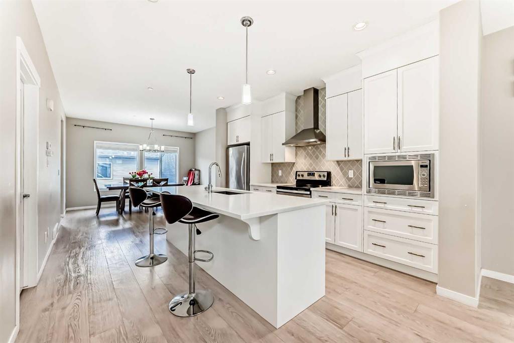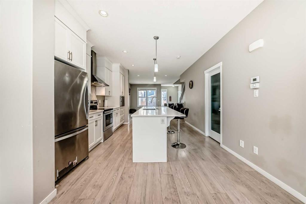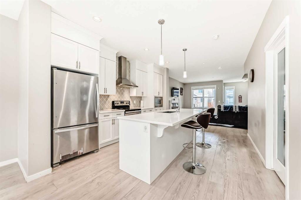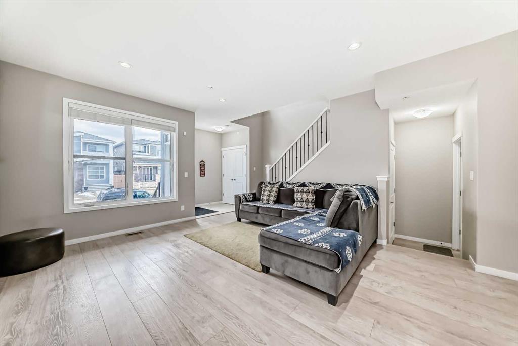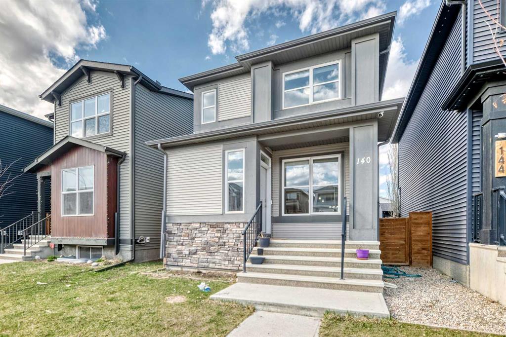Welcome to 140 Howse Ave in Livingston! This next to new contemporary, open concept home is located just off Stoney Trail in Calgary’s Northeast. Livingston is a move-in ready community with parks and pathways, schools and much more. Features of this beautiful 3-bedroom, 2.5-bathroom home include; quartz counter tops in the kitchen, stainless steel appliances, large pantry, durable laminate floors, electric fireplace, large windows that provide plenty of natural lighting, a mud room, Central AC, Central vacuum, maintenance-free landscaping and a detached (two-car) garage. Don’t miss out on this opportunity – come tour this perfect starter home today! Walking distance to community hub and bus stop. 9 feet ceiling height in basement, central vacuum, humidifier, only few years old washer & dryer. No smoking and no pets home.