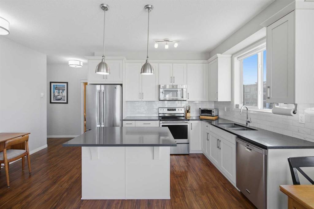Designed with modern living in mind, the open-concept layout seamlessly connects the living, dining, and kitchen spaces creating a bright, inviting atmosphere ideal for both everyday living and entertaining. The contemporary kitchen features sleek cabinetry, ample amount’s of counter space, updated stainless steel appliances helping create a perfect space to cook and entertain.