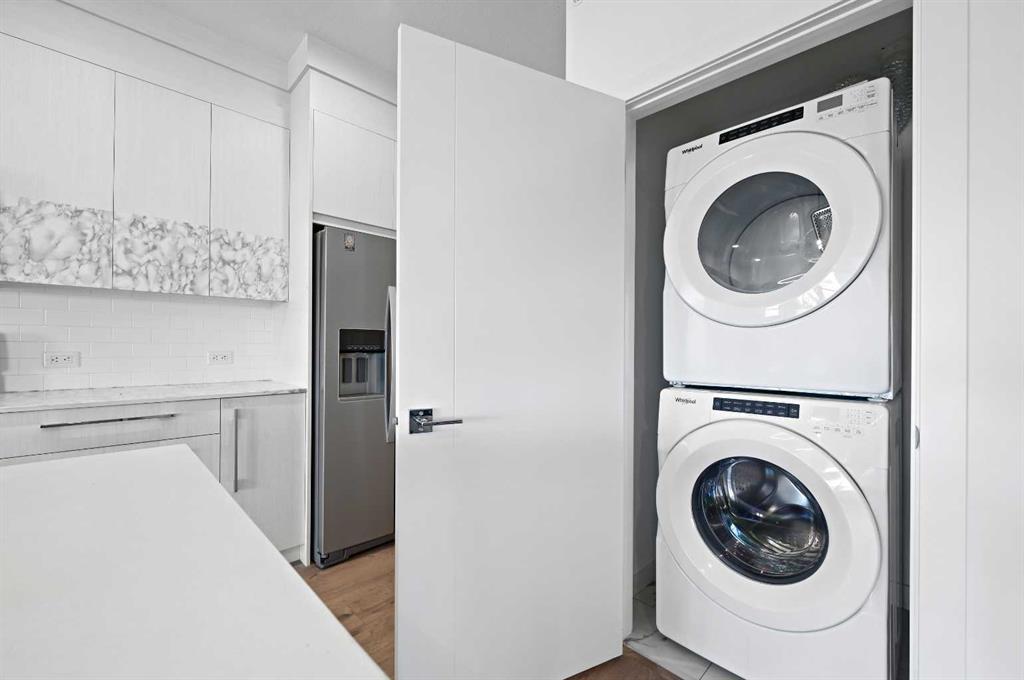 This bright and open corner unit offers an inviting floor plan designed for comfort and convenience. The contemporary kitchen features sleek cabinetry, quartz countertops, stainless steel appliances, and a spacious island perfect for casual dining or entertaining. The generous living and dining area flows seamlessly onto a private balcony, ideal for morning coffee or evening relaxation. The primary bedroom boasts a walk-through closet and a full ensuite bathroom, while the second bedroom and full bath provide flexibility for family, guests, or a home office. Additional highlights include in-suite laundry, titled parking, and ample storage space. The building offers modern design, secure entry, and is pet-friendly. Located steps from shops, restaurants, schools, and transit, and just minutes from major routes, this home combines lifestyle and convenience in one of Calgary’s most sought-after NE communities.