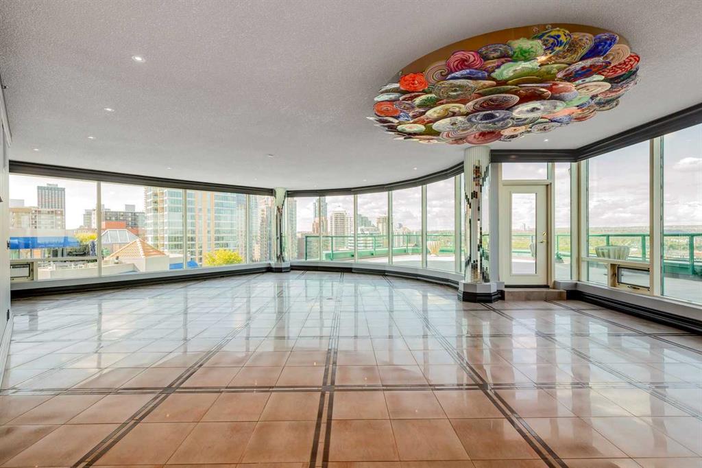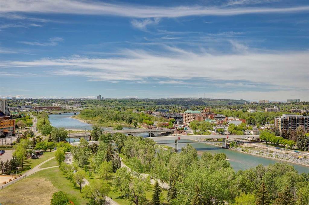 Exceptional opportunity to reimagine a truly grand sub-penthouse residence in the exclusive Point on the Bow, an intimate + highly sought-after building of just 38 residences. Offering nearly 4,900 square feet of living space, this remarkable home showcases expansive proportions, floor-to-ceiling windows + breathtaking, unobstructed views from every principal room. Privately accessed by elevator, the residence opens to a sprawling + versatile layout featuring two luxurious primary suites, two additional bedrooms + extensive living + entertaining areas designed for both formal + relaxed settings. The outdoor experience is equally impressive, with over 1,200 square feet of patio space—perfect for sophisticated entertaining or quiet enjoyment of the panoramic 180-degree vistas spanning the Bow River, mountains + city skyline. Set in a serene riverside location just steps to the pathway system, the building offers a refined lifestyle with 24-hour concierge, welcoming landscaped grounds + premium amenities including indoor pool, hot tub, fitness centre + social lounge. Additional highlights include two underground parking stalls, car wash bay + two generous storage rooms. An exceptional lock-and-leave offering combining scale, privacy + an unparalleled setting, with acclaimed dining + urban conveniences just moments away. Pets permitted with board approval.