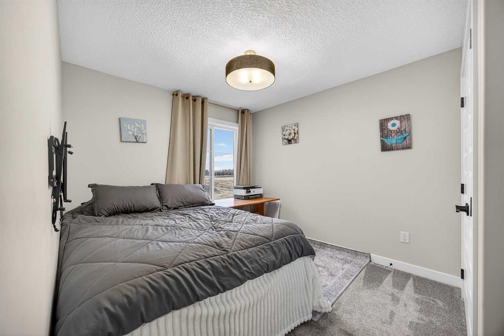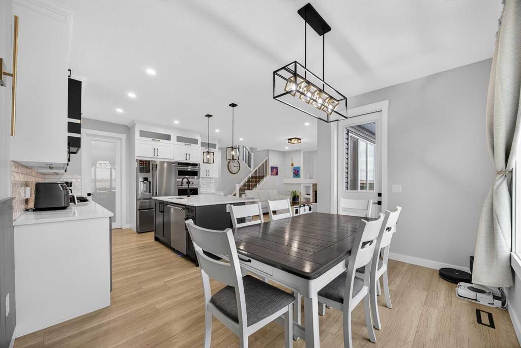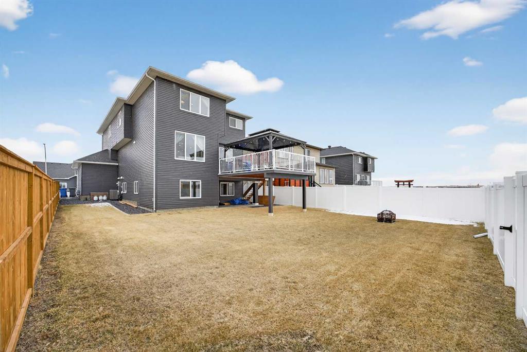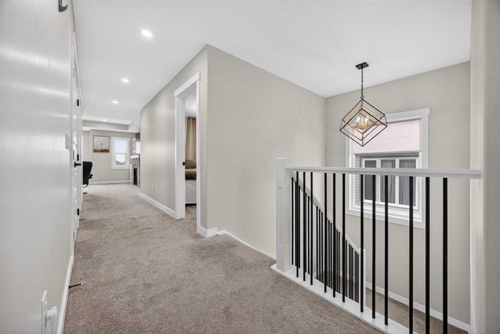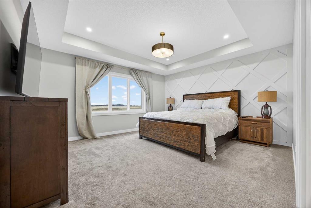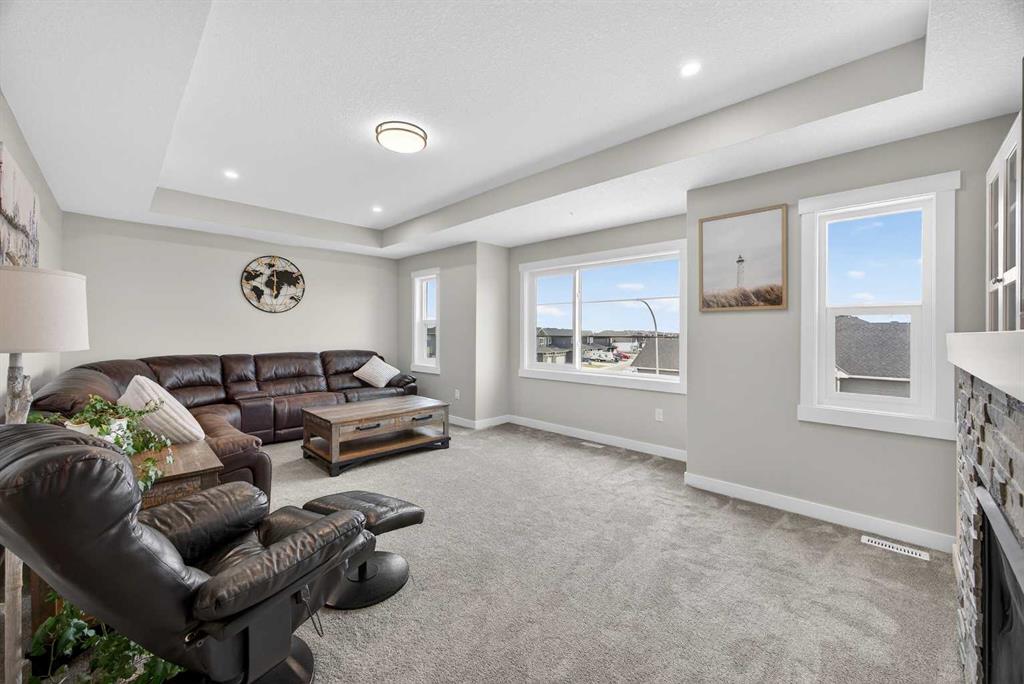 Just one year young and offering over 2,600 sq ft above grade, and 4 bedrooms upstairs, this stunning two-storey blends thoughtful design with elevated finishes — and yes, those wide-open country sunset views really are as incredible as they sound. Expansive rear windows flood the open-concept main floor with natural light while framing miles of prairie landscape… your evening routine just found its new favourite backdrop. The main level welcomes you with a spacious front entry and versatile flex room perfect for a home office, salon, playroom, or whatever your life needs today. The living room anchors the space with a feature fireplace, while the oversized dining area opens to the expanded upper deck with gas line and convenient access to the yard below — ideal for summer entertaining that lasts until the sun dips below the horizon. The kitchen? Equal parts stylish and seriously functional. Gas cooktop, built-in oven and microwave, beverage fridge, and an abundance of workspace… but the pièce de résistance is the show-stopping walk-through pantry with a full wall of wood shelving leading directly to the triple garage entry. This practical drop zone includes open locker-style hooks and shelving designed for every season of gear. A powder room completes the main floor. Upstairs is where this home truly shines for families — FOUR bedrooms on one level (yes, all upstairs!) plus a massive bonus room with an abundance of cabinetry and a second fireplace. The primary suite is a retreat of its own, featuring a spa-inspired ensuite with dual sinks, glass/tile shower, soaker tub, and a walk-in closet that absolutely lives up to the hype. Two bedrooms share a convenient central bath, while the fourth bedroom and additional full bathroom provide flexibility for guests, teens, or multigenerational living. The fully finished walkout basement continues the theme of space and versatility, offering a large bedroom, full bathroom, and an expansive rec area with room for both movie nights and games or fitness space. The long wet bar with second beverage fridge ties it all together — because entertaining should be effortless. Outside, the yard is spacious, functional, and ready for summer… but let’s be honest, it’s the uninterrupted sunset views over open fields that make this property unforgettable. A nearly-new home, 4 bedrooms up, fully finished walkout, triple garage, and views that never get old — with just the right amount of sass and a whole lot of class. Virtual tour available in link. Call your favourite local REALTOR to check this spectacular property out today!