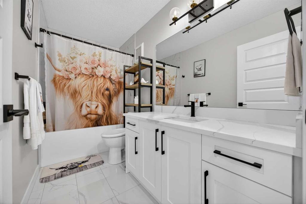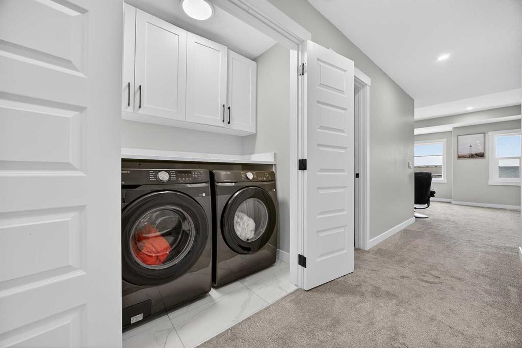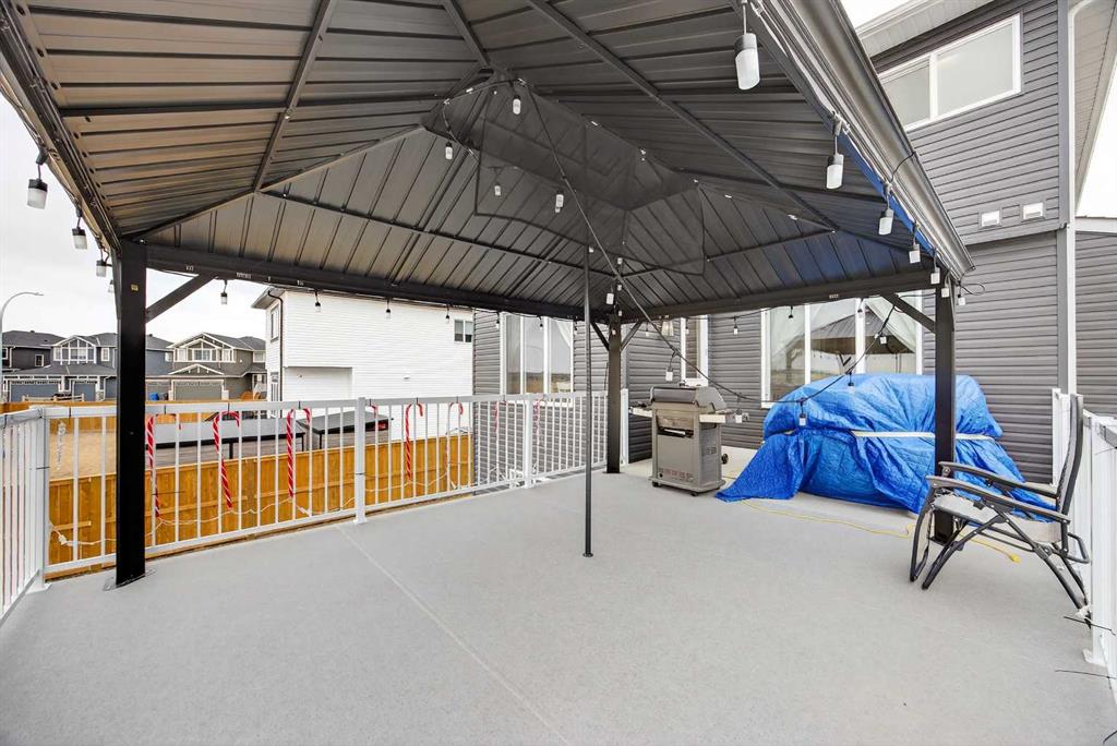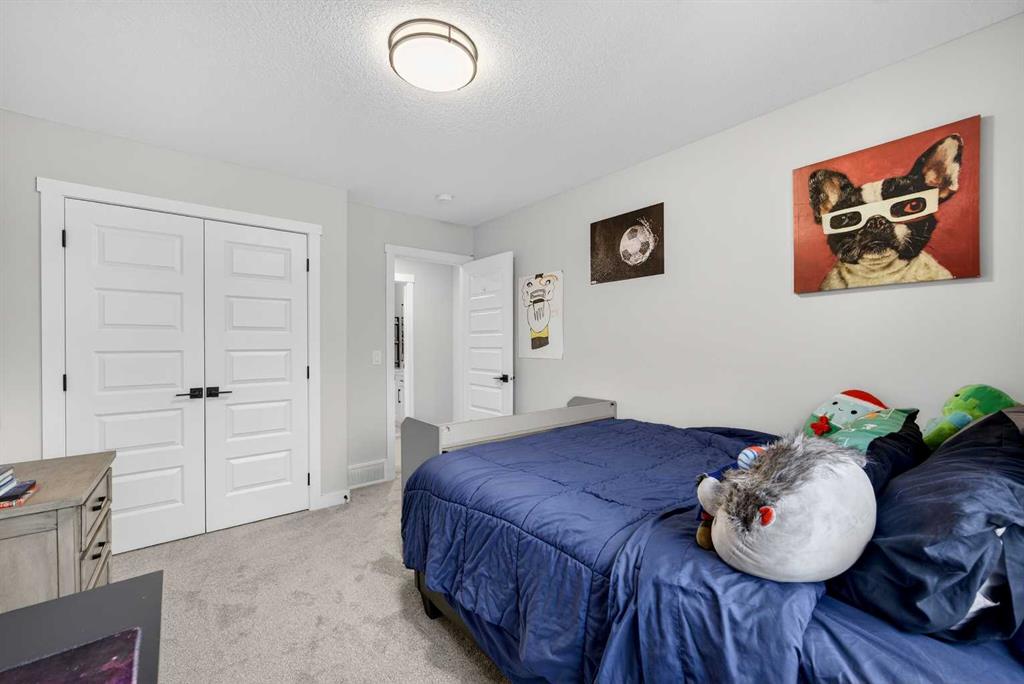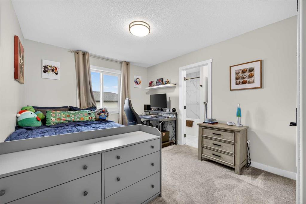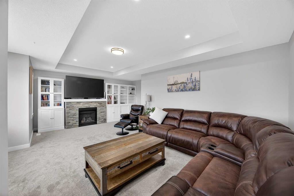 Just one year young and offering over 2,600 sq ft above grade, and 4 bedrooms upstairs, this stunning two-storey blends thoughtful design with elevated finishes — and yes, those wide-open country sunset views really are as incredible as they sound. Expansive rear windows flood the open-concept main floor with natural light while framing miles of prairie landscape… your evening routine just found its new favourite backdrop. The main level welcomes you with a spacious front entry and versatile flex room perfect for a home office, salon, playroom, or whatever your life needs today. The living room anchors the space with a feature fireplace, while the oversized dining area opens to the expanded upper deck with gas line and convenient access to the yard below — ideal for summer entertaining that lasts until the sun dips below the horizon. The kitchen? Equal parts stylish and seriously functional. Gas cooktop, built-in oven and microwave, beverage fridge, and an abundance of workspace… but the pièce de résistance is the show-stopping walk-through pantry with a full wall of wood shelving leading directly to the triple garage entry. This practical drop zone includes open locker-style hooks and shelving designed for every season of gear. A powder room completes the main floor. Upstairs is where this home truly shines for families — FOUR bedrooms on one level (yes, all upstairs!) plus a massive bonus room with an abundance of cabinetry and a second fireplace. The primary suite is a retreat of its own, featuring a spa-inspired ensuite with dual sinks, glass/tile shower, soaker tub, and a walk-in closet that absolutely lives up to the hype. Two bedrooms share a convenient central bath, while the fourth bedroom and additional full bathroom provide flexibility for guests, teens, or multigenerational living. The fully finished walkout basement continues the theme of space and versatility, offering a large bedroom, full bathroom, and an expansive rec area with room for both movie nights and games or fitness space. The long wet bar with second beverage fridge ties it all together — because entertaining should be effortless. Outside, the yard is spacious, functional, and ready for summer… but let’s be honest, it’s the uninterrupted sunset views over open fields that make this property unforgettable. A nearly-new home, 4 bedrooms up, fully finished walkout, triple garage, and views that never get old — with just the right amount of sass and a whole lot of class. Virtual tour available in link. Call your favourite local REALTOR to check this spectacular property out today!