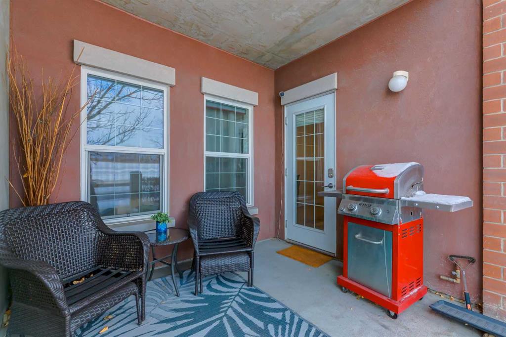 The living area extends naturally to the patio, which is perfect for summer barbecues and outdoor relaxation. Pet owners will particularly appreciate this location, as the main-floor unit provides direct access from your patio to the sidewalk, making morning walks effortless. The primary bedroom is generously scaled with a walk-in closet, complemented by a four-piece bath and a dedicated den that serves as an ideal home office.
