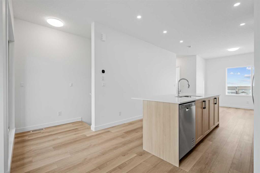 NEW BUILD TOWNHOMES | LOW CONDO FEES | 3 BED (2 UP, 1 DOWN) / 2.5 BATH / 1308 SQ FT | SINGLE ATTACHED GARAGE + DRIVEWAY | IMMEDIATE POSSESSION – Welcome to the Aspen 2 townhome by Minto Communities, an award-winning Canadian builder, located in Wildflower, proudly voted Best New Community in Canada. This vibrant, master-planned community in Airdrie is designed with lifestyle and connection in mind, offering an exciting blend of home styles in a neighbourhood built to grow with you. This thoughtfully designed townhome offers a functional, modern layout ideal for today’s homeowner. The main floor features a well-balanced design with the living room and a convenient half bath at the front of the home. The kitchen sits at the centre, complete with stainless steel appliances, a kitchen island, and ample storage, seamlessly connecting to the dining area at the rear. Just off the dining space, enjoy access to a private balcony which is perfect for morning coffee or evening relaxation. Upstairs, you’ll find a rare and highly desirable dual primary bedroom layout. The front-facing primary bedroom includes a large walk-in closet and a private 3-piece ensuite, while the rear bedroom offers its own walk-in closet and 4-piece ensuite. Upper-floor laundry is conveniently tucked away on this level, enhancing everyday functionality. The ground floor welcomes you with a spacious entryway and features a third bedroom, ideal for guests, a home office, or flex space. Mechanical systems are neatly tucked away, and this level provides direct access to the single attached garage. A full driveway allows parking for two vehicles total, offering exceptional convenience for a townhome. Residents of Wildflower enjoy exclusive access to The Hillside Hub, a standout amenity centre featuring Airdrie’s first outdoor pool, a hot tub, open-air sports court, and a variety of shared indoor and outdoor spaces designed for gathering, recreation, or quiet retreat. With nearby parks, pathways, amenities, and easy access to major routes, Wildflower delivers a truly well-rounded lifestyle. Combining award-winning community planning, modern design, and immediate possession, this is an outstanding opportunity to own a stylish townhome in one of Canada’s most celebrated new communities. Don’t miss your chance to make Wildflower home! Book your visit today!