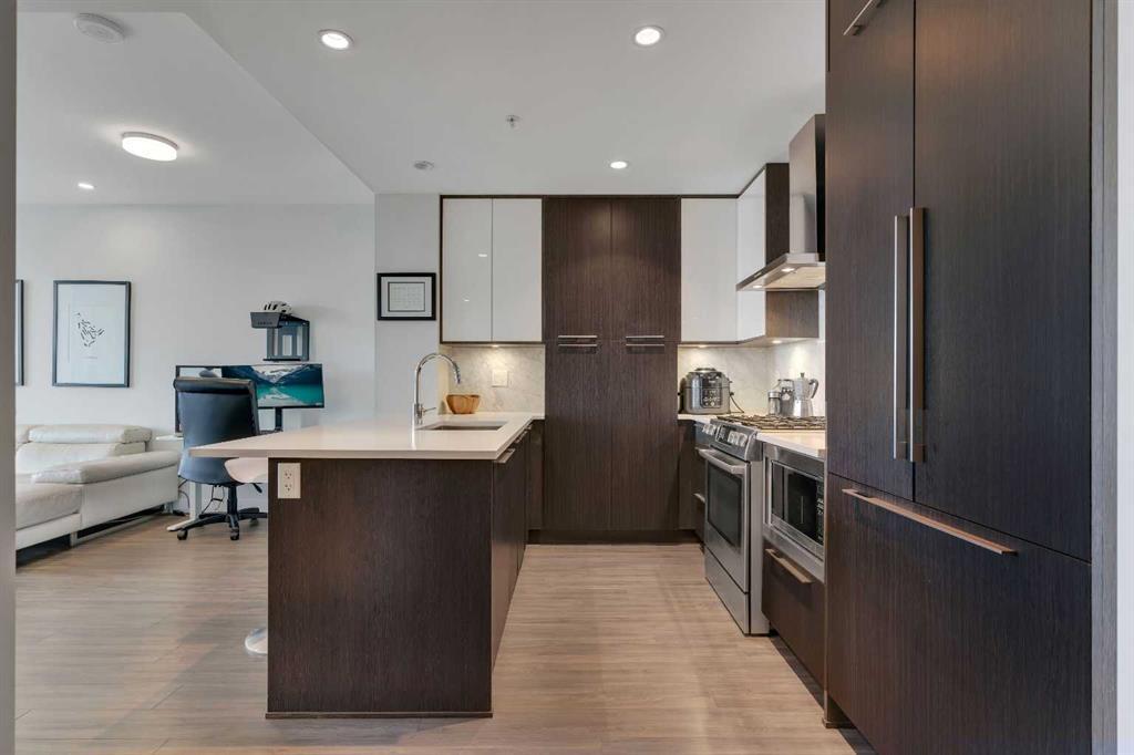 Welcome to 1408, 930 16 Avenue SW, situated in Calgary’s vibrant entertainment district, steps from top restaurants, shops, and nightlife. Access your unit directly via one of three high-speed elevators, and be greeted by a bright, open-concept design with floor-to-ceiling windows that showcase stunning city and mountain views. The gourmet kitchen is a true highlight, featuring stone countertops, full-height cabinets, and a spacious breakfast bar island—perfect for entertaining. The adjacent dining and living areas are flooded with natural light and offer direct access to a large balcony, ideal for morning coffee or evening gatherings against the breathtaking backdrop. The spacious primary bedroom also boasts fantastic views and a second entry to the balcony, creating a serene retreat. The stylish bathroom includes a deep soaker tub, and additional features like in-suite laundry, underground parking, and a separate storage locker ensure convenience. The building offers a wealth of amenities, including a 10,000 sq. ft. “Club Royal” with an elevated garden terrace, BBQs, steam room, sauna, gym, squash court, owner’s lounge, chef’s kitchen, and private dining area. An on-site concierge (24/7), and glamorous lobby add to the luxury living experience. Plus, with Canadian Tire and Urban Fare Market on-site, everything you need is at your doorstep. Nearby attractions include Elbow River pathways, transit, and Memorial Park.