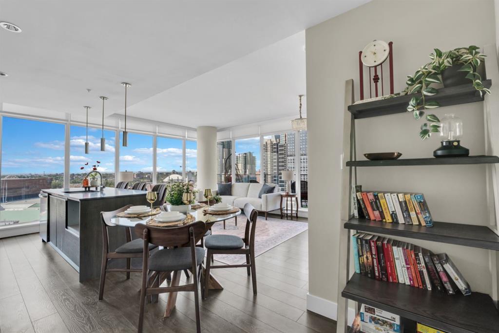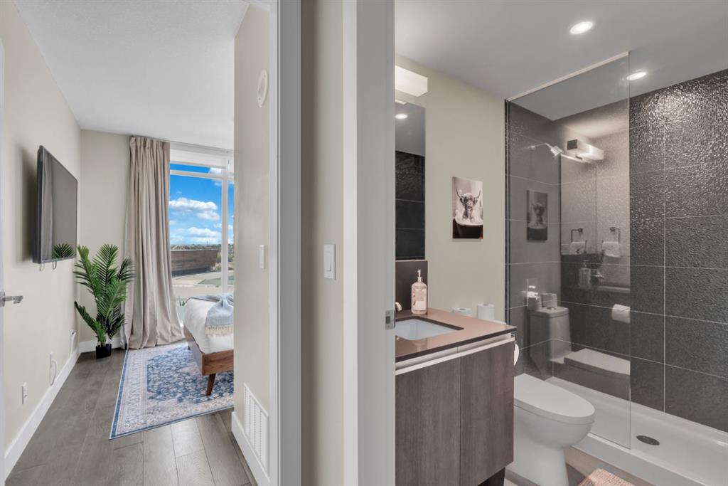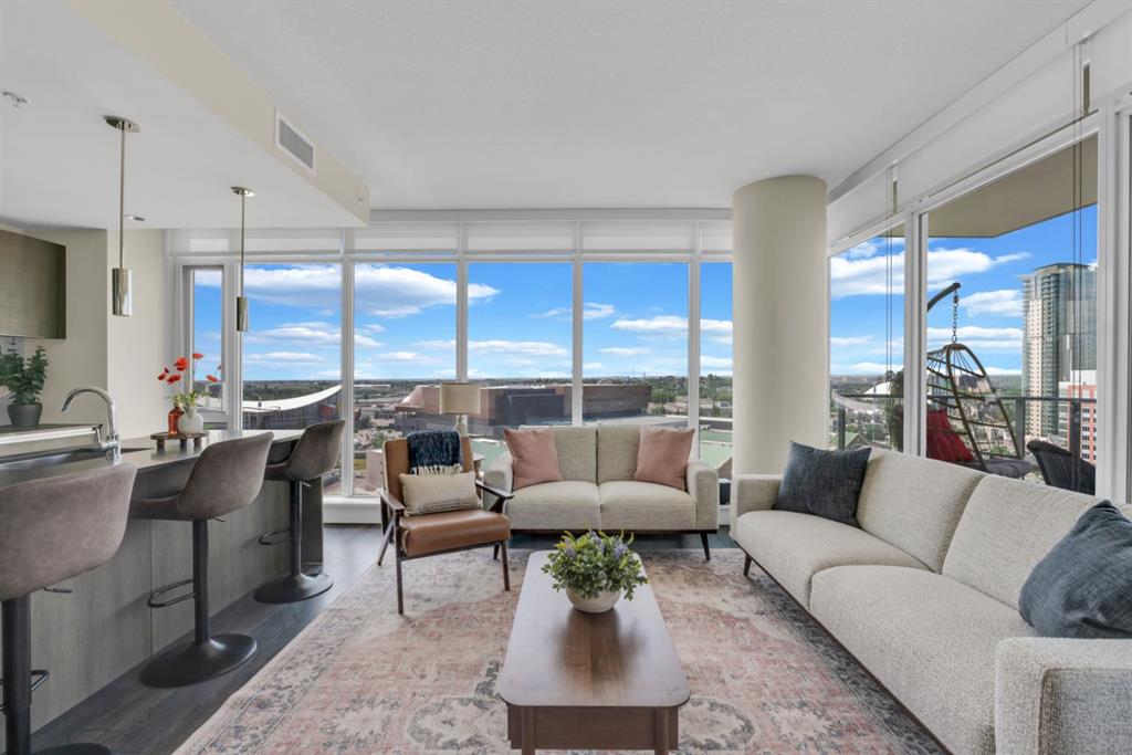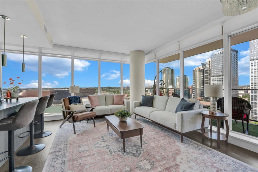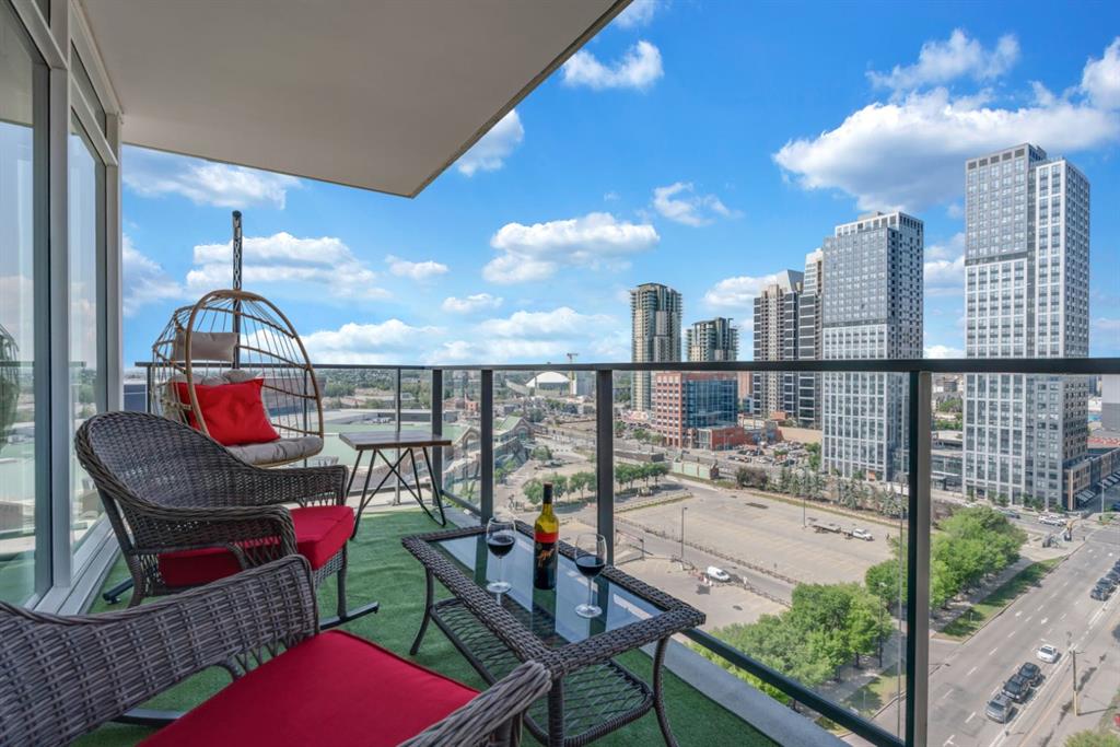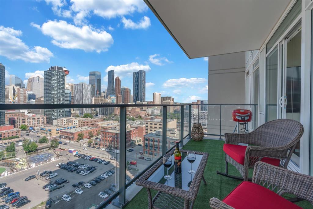 One of the few 900+ sq ft units currently available in The Guardian, this beautifully maintained condo stands out with its spacious layout, premium positioning, and stunning city-facing orientation. Located on the 14th floor in the highly desirable 09 stack, this home offers unobstructed skyline views of downtown Calgary and the Calgary Tower, filling the space with natural light through expansive floor-to-ceiling windows.