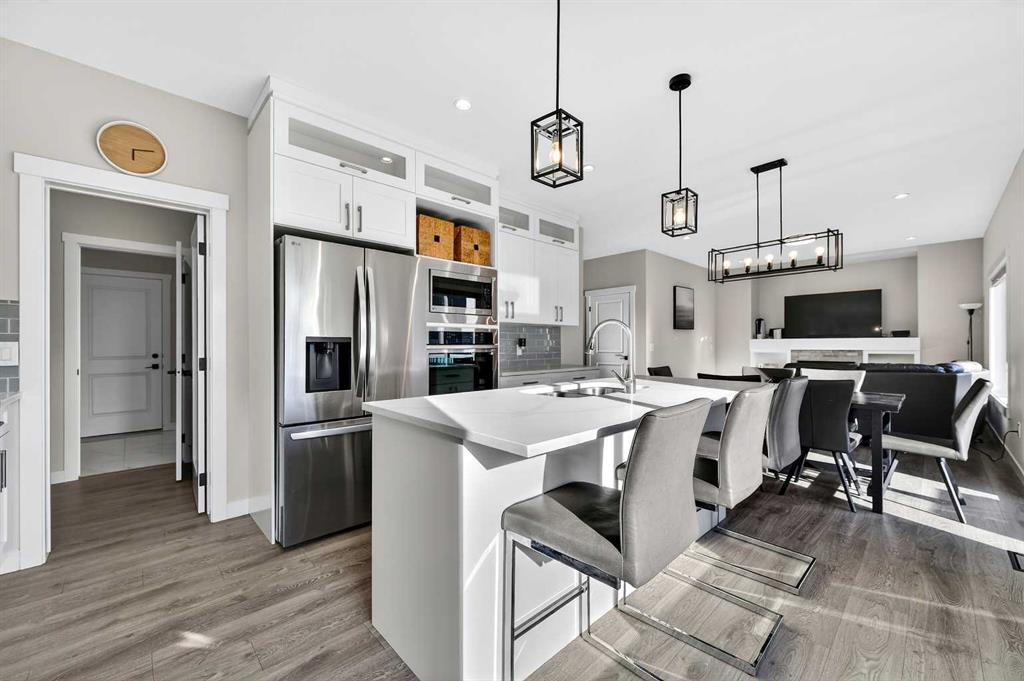 Welcome to this stunning family home, built in 2022 and perfectly situated on a quiet cul-de-sac just steps from a small playground. From the moment you enter, the bright and spacious foyer sparkles — a warm and elegant welcome for you and your guests. The central flex room is ideal as a home office, kids’ playroom, or creative space to suit your family’s lifestyle. The open-concept main floor is designed for connection and comfort, featuring a cozy fireplace, large windows, and patio doors leading to a spacious backyard deck — perfect for summer barbecues and evening relaxation. The kitchen will delight any home chef with its abundance of cabinetry and counter space, complemented by a convenient walk-thru pantry connecting to the garage entry — making grocery drop-offs effortless. A stylish powder room completes the main level. Upstairs, retreat to the luxurious primary suite offering a spa-inspired ensuite with dual sinks, a jetted tub, and a separate tiled shower, plus a generous walk-in closet with custom organizers. Two additional bedrooms, a full bath, a laundry room, and a bright, airy bonus room provide the ideal setup for a growing family. The unfinished basement offers endless potential — whether you design your dream rec space or enjoy it as a wide-open play area. A separate side entrance leads to a fenced dog run for your furry family members. With quick access to town amenities, scenic walking paths, and easy routes for commuters, you’ll love the blend of small-town charm and modern convenience this home offers. Call your favourite Local Real Estate Agent today to make your small-town dreams come true!
