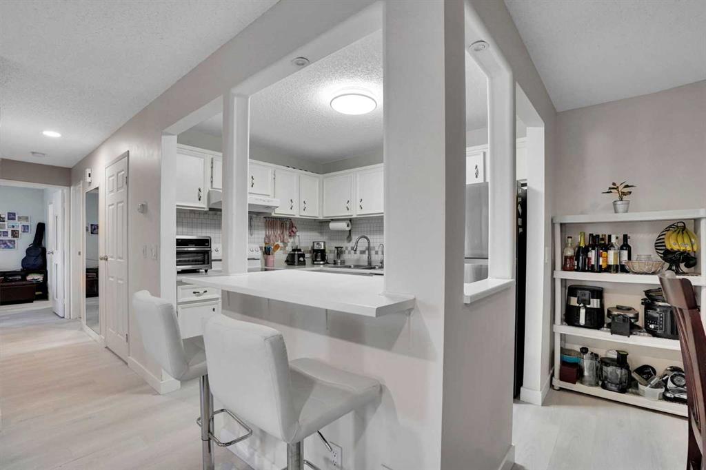 Welcome to 141 Cedar Springs Gardens SW, an exceptional 923 sq. ft. renovated townhouse in the heart of Cedarbrae—offering refined comfort, thoughtful updates, and outstanding value within one of southwest Calgary’s most established communities. Larger than many units in the complex and meticulously maintained, this bright and inviting home features a functional open-concept layout enhanced by durable luxury vinyl plank flooring, a fresh neutral palette, and abundant natural light from its sunny North-facing exposure—perfect for enjoying morning coffee on your porch and garden space. The white kitchen is beautifully updated with sleek cabinetry, subway tile backsplash, generous counter space, and a convenient island that seamlessly connects to the dining and living areas. A cozy fireplace anchors the living room, creating a warm and welcoming atmosphere ideal for everyday living and entertaining. The primary bedroom offers a walk-through closet leading to a private two-piece ensuite, while the second bedroom provides flexible space for family, guests, or a home office. A renovated four-piece bathroom adds modern comfort, and in-suite laundry plus additional freezer space enhance practicality. Rarely found in this complex, this unit offers the opportunity of two heated underground parking stalls—one assigned that comes with the unit, and one additional leased stall ($40/Monthly) located side-by-side—along with bike storage and ample visitor parking. Situated within walking distance to shops, restaurants, coffee spots, schools, parks, playgrounds, and the Cedarbrae Community Centre, residents also enjoy quick access to South Glenmore Park pathways, Fish Creek Park, Brae Centre amenities, Southland LRT, Stoney Trail, and Macleod Trail. Set in a well-managed, pet-friendly complex, this move-in-ready home offers the ideal blend of space, convenience, and long-term investment. Cedarbrae is a mature and welcoming neighbourhood known for its quiet, tree-lined streets and strong sense of community, ideal for families and long-term living