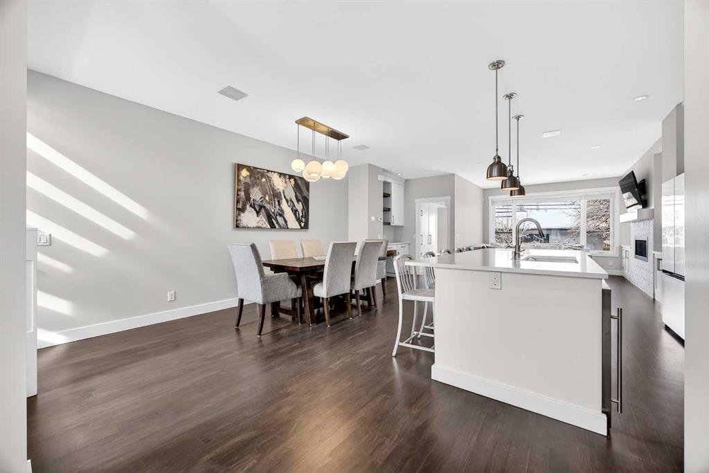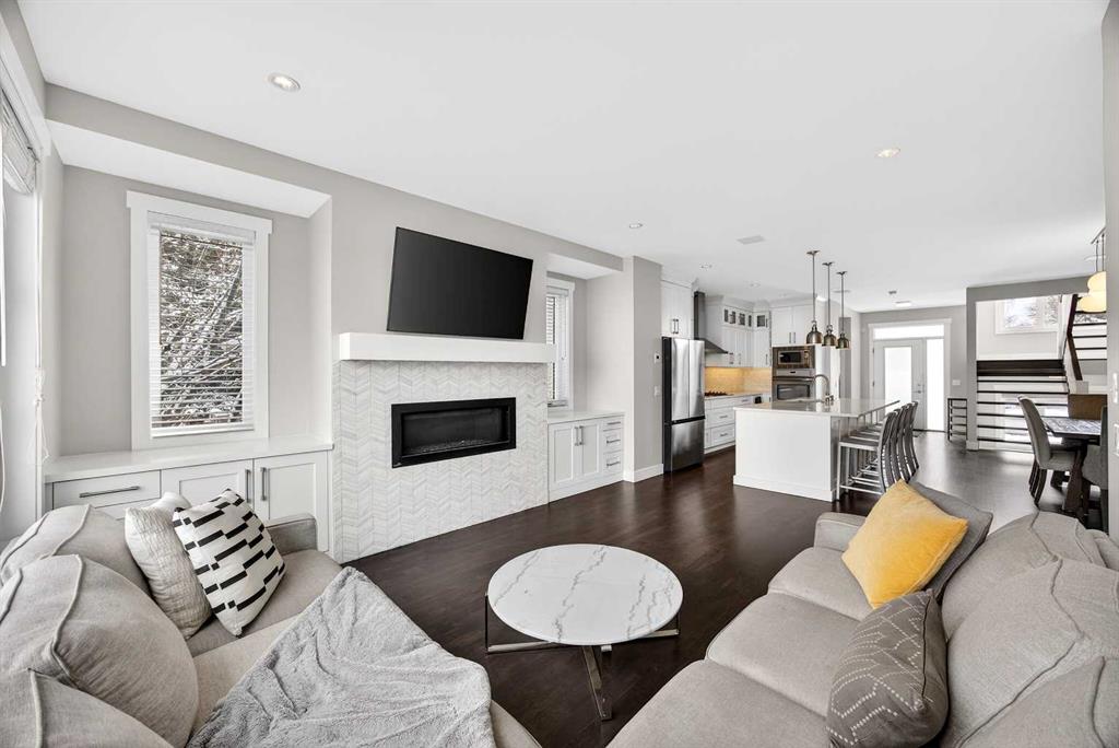 Welcome to this beautifully crafted semi-detached infill with over 2700 SQ Ft of developed living space, nestled on a quiet street in the highly sought-after community of Capitol Hill. Just steps away from Confederation Park’s picturesque pathways and sprawling green spaces, this home offers a unique blend of tranquility and urban convenience—only minutes from downtown Calgary. From the moment you step inside, you’ll notice the exceptional attention to detail and the high-quality materials that set this home apart. The open-concept main floor exudes warmth and sophistication, thanks to rich site-finished hardwood flooring and an elegant open-rise staircase. The heart of this home is the chef’s kitchen, thoughtfully designed for both daily living and entertaining. Here, you’ll find a spacious central island, premium stainless-steel appliances, custom Marvel cabinetry, and sleek quartz countertops. The kitchen flows seamlessly into a spacious living room, anchored by a modern fireplace and extending into a welcoming dining area—an ideal setting for hosting family and friends. Rounding out the main floor are a stylish powder room and a practical mudroom for added convenience. Upstairs, three generously sized bedrooms continue the theme of luxury with hardwood flooring throughout. The primary suite is a true retreat, featuring a walk-in closet and a newly renovated, spa-inspired ensuite with dual vanities, a freestanding soaker tub, heated tile floors, and a glass-enclosed shower. A full bathroom and a convenient laundry area complete the upper level. The fully finished basement adds even more living space, boasting a large family/rec room with a wet bar, an additional bedroom, and a full bathroom—perfect for guests, a home office, or a growing family. Comfort is elevated with in-slab heated basement floors. Step outside to your own private, landscaped backyard oasis, complete with a spacious patio and mature trees, providing the perfect backdrop for relaxation or entertaining. The double detached garage is both insulated and heated, ensuring year-round usability. Additional features such as built-in home audio and central vacuum add to the home’s modern conveniences. Located in one of Calgary’s most desirable inner-city neighborhoods, this property offers fantastic access to parks, schools, transit, and major amenities. You’ll enjoy quick connections to the Southern Alberta Institute of Technology, University of Calgary, and downtown. If you’re searching for the perfect balance of style, comfort, and functionality in a vibrant community, this Capitol Hill infill is a must-see. Please reach out if you’d like more information or to schedule a private showing today.