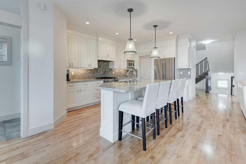Step into this stunning two-storey home located in the inner city area of Shaganappi. Throughout the home, fresh paint and brand-new carpet elevate the overall look and feel, making it truly move-in ready. As you enter, you’ll be greeted by vaulted ceilings and a spacious foyer that sets the tone for the rest of the home. The main level features beautiful hardwood floors and an open kitchen filled with light. This kitchen is a chef’s delight, boasting a large island with granite countertops, breakfast bar seating, ample counter and storage space, a gas stove, stainless steel appliances, and a pantry. From the kitchen, you’ll find a bright, spacious living room accentuated by a cozy fireplace with built-in shelves and storage, large windows, and numerous pot lights, creating a warm and inviting atmosphere. The main floor also boasts a formal dining room, perfect for family gatherings, a mudroom leading to the back deck, and a 2 piece bathroom completes the main level. Upstairs, the large primary bedroom is a true retreat with vaulted ceilings, a walk-in closet with built-in organizers, and a spacious five-piece ensuite featuring a soaker jet tub, double vanity, stand-up shower, and generous counter and storage space. Three additional bright bedrooms provide ample space for family or guests, and all bedrooms are serviced by a convenient upper floor laundry room with storage. The finished basement is designed for entertainment and versatility, featuring a large wet bar with plenty of counter and cupboard space, a sink, and its own fridge and dishwasher. The basement also includes a family room with abundant space for various activities and a fifth and final bedroom with an ensuite bathroom, perfect for guests or a home office. This home also enjoys the benefit of 2 furnaces and 2 air conditioning units, ensuring ultimate control over the temperature. The exterior of the home is equally impressive, with a low-maintenance backyard that includes a large wood deck, a concrete patio, and a landscaped grass area surrounded by a garden, providing a private and serene outdoor space. The double detached heated garage with garage door controls opens to the back alley, ensuring convenience and security. Located in the desirable Shaganappi neighbourhood, this home offers an unbeatable location. Just steps from an LRT station and the Shaganappi golf course, it is also close to schools, parks, shopping options including a Walmart, and the vibrant 17th Avenue. The proximity to downtown Calgary and the Bow River, combined with easy access to the rest of the city via Bow Trail, makes this an ideal home for those seeking both convenience and luxury. Don’t miss the opportunity to make this exceptional property your own. Don’t miss the opportunity to make this freshly updated and beautifully maintained property your own. Book a showing today and experience the best of Calgary living.