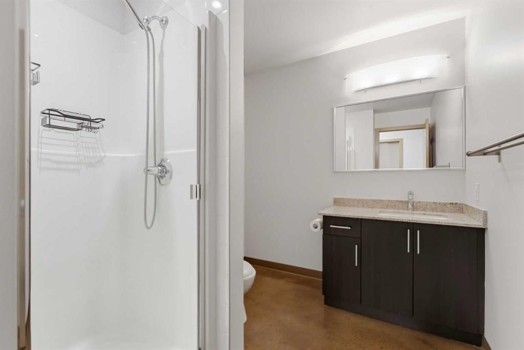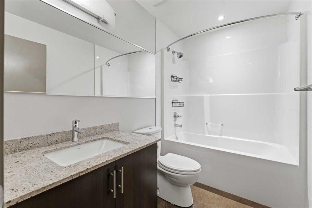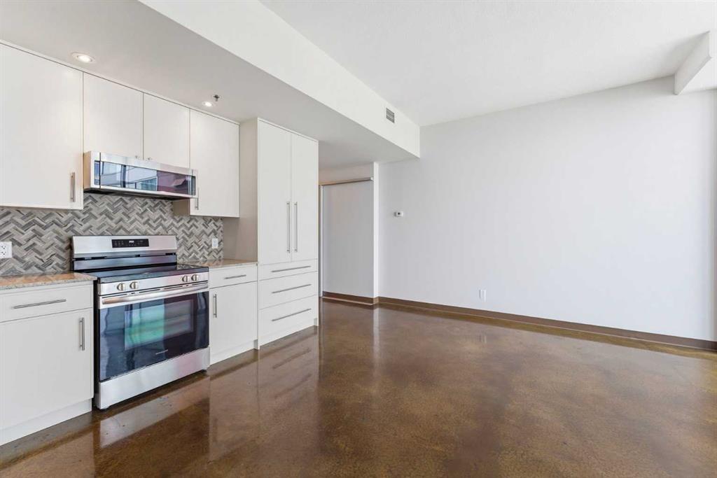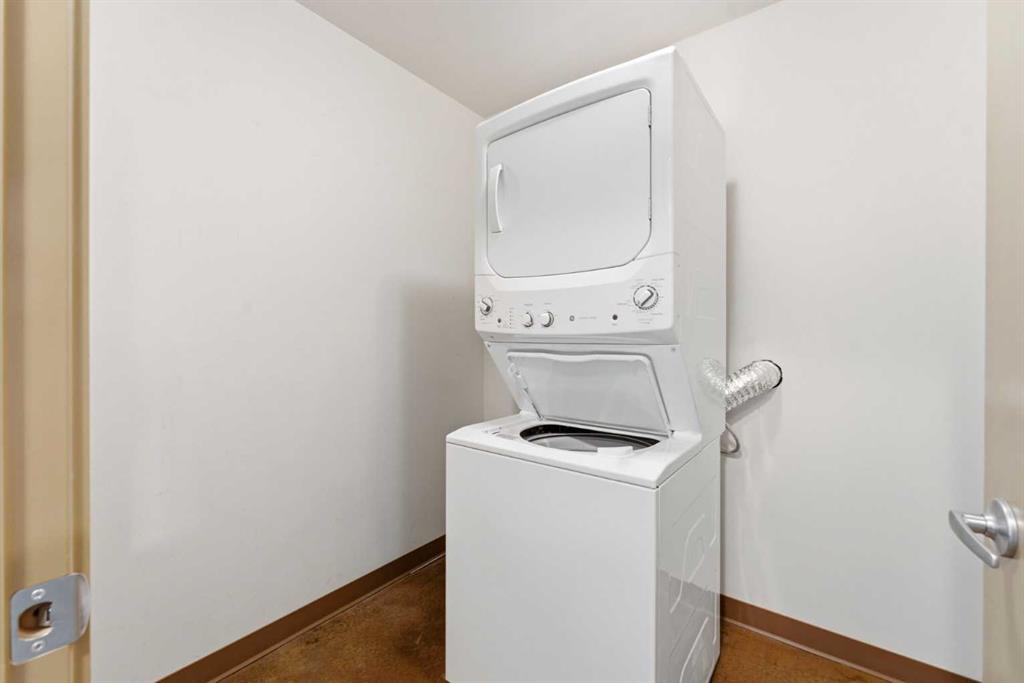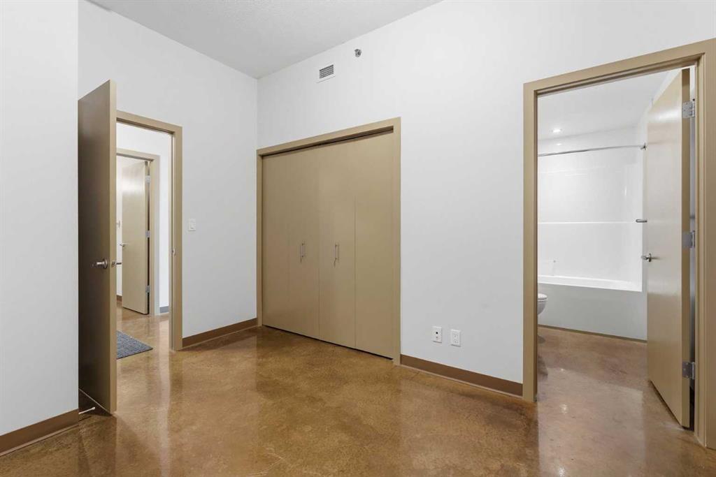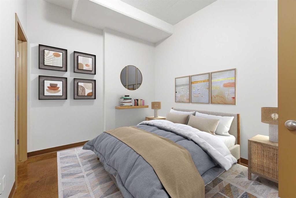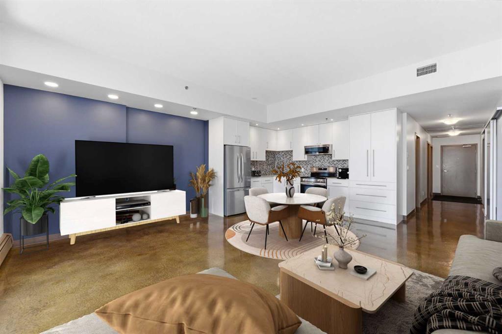 Take a look at this excellent opportunity for a stunning well priced 2 bedroom 2 bath unit located in the heart of Calgary. Just steps away from some of the cities best restaurants, cafes, pubs and local shops, this condo perfectly incorporates modern city life with comfortable living. This future home takes convenience and functionality to the next level, with an in-unit laundry room, storage, and a titled parking stall. Gleaming polished concrete flooring runs throughout the entire unit. A large open-concept living room with floor to ceiling windows bathes the entire space in natural light, perfect for hosting or daily relaxation. The kitchen, equipped with modern upgrades that provide greater comfort and convenience. Approximately 1.5 yrs ago the kitchen was remodeled with extended height cabinets that now reach the ceiling, a larger pantry with pot drawers, all new back splash and a new stainless steel appliance package, including a french door fridge with a freezer drawer, hidden dishwasher with a cabinet panel and extra lighting. The kitchen is an ideal work space offering plenty of counter and tons of cupboard space. Both bedrooms are purposefully placed to provide maximum privacy and comfort for the owners or guests. The master suite includes a full 4-piece en-suite. Sliding glass doors open to the second bedroom (office or flex space) perfect for guests with a full 3-piece bathroom located just steps away. With Stampede Park and local cafes just minutes away, this unit provides a vibrant urban lifestyle that perfectly encapsulates modern downtown living and local convenience. This condo offers the flexibility perfect for first time buyers, young couples or investors.