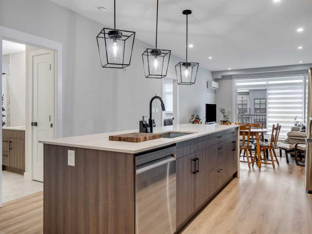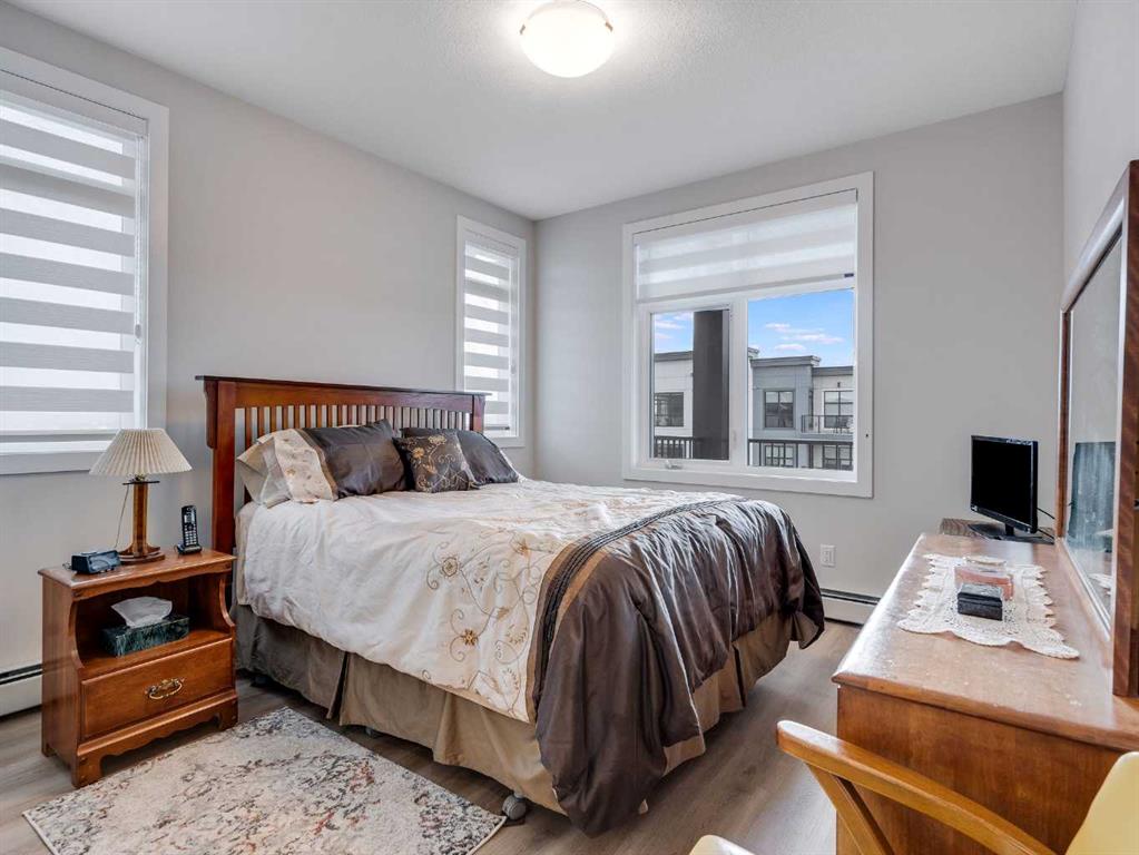 Experience the pinnacle of modern, low-maintenance living in this pristine top-floor 2 bed, 2 bath, corner unit, bathed in natural light from its full southwest exposure and offering breathtaking mountain views from its generous west-facing deck. Perfectly suited for first-time buyers or those seeking to downsize without compromise, this immaculate residence features an open-concept layout anchored by a gourmet kitchen with a stunning waterfall quartz island, seamlessly flowing into the dining and living areas—an ideal space for entertaining. The tranquil primary bedroom is a private retreat complete with a walk-in closet and a luxurious ensuite, while a second bedroom with ensuite access offers versatility for guests or family. Designed for year-round comfort and convenience, this move-in-ready home includes the essential luxury of built-in air conditioning, in-suite laundry, underground parking, underground storage and is situated in the vibrant heart of Seton, just steps from shops, restaurants, the South Health Campus, and with easy access to major commuter routes. This is an exceptional opportunity to own a home that shows better than new in one of Calgary’s most sought-after communities; contact your favorite real estate agent today to schedule a private showing.