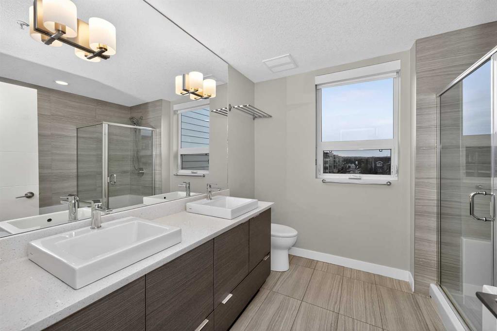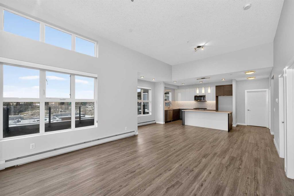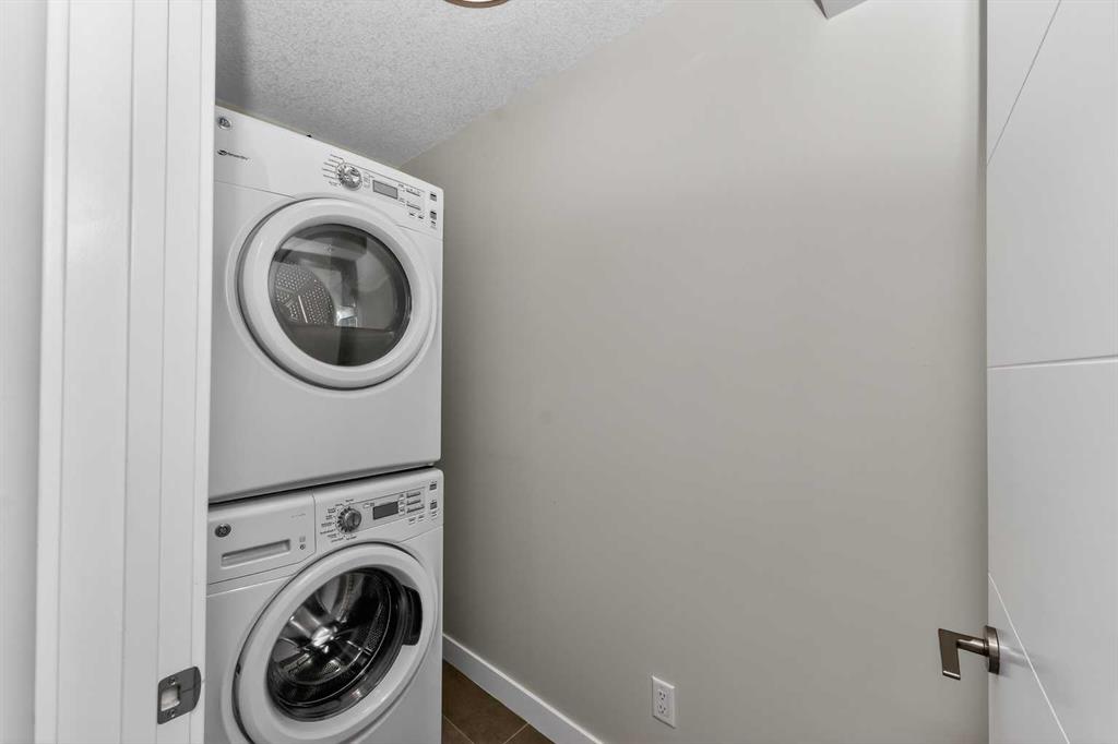 Discover this exceptional penthouse nestled in the heart of Currie Barracks, offering unparalleled elegance and comfort. Located on the top floor of a stunning four-storey building, this residence features soaring ceilings and an expansive open-concept living and dining area perfect for both relaxing and entertaining. Step outside onto the massive terrace, where breathtaking views and seamless indoor-outdoor living await. With dual balconies, you will enjoy stunning views from every direction, including mountain views from the primary bedroom balcony. Every detail of this penthouse exudes sophistication, from the sleek quartz countertops in the modern kitchen and bathrooms to the thoughtfully designed layout that maximizes space and natural light. For year-round comfort, the home is equipped with dual air conditioning units, one in the living room and one in the primary bedroom. Enjoy the convenience of two titled parking stalls in the heated underground parkade, along with two dedicated storage unit and secure bike storage. The parkade also offers 26 visitor stalls and a car wash for added convenience. The beautifully landscaped surroundings provide easy access to numerous nearby parks, creating a serene and inviting atmosphere. Experience the pinnacle of refined living in this one-of-a-kind penthouse where luxury truly meets lifestyle.