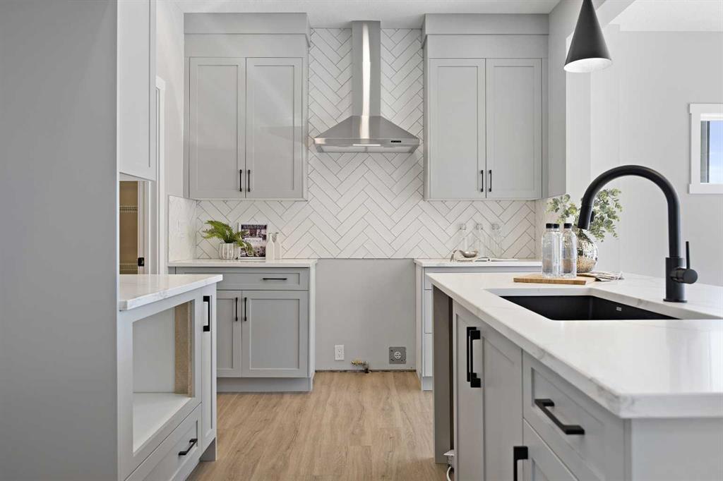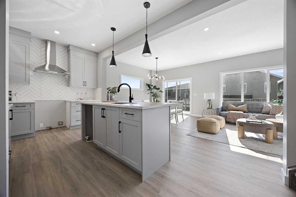 Welcome to 1414 Bayview Crescent, a beautifully designed 3-bedroom, 2.5 bathroom WALKOUT home with sunny south backyard exposure that floods the home with natural light. Step inside to a bright, inviting main floor featuring luxury vinyl plank flooring that spans the entire level and is complemented by 9-foot ceilings. The chef’s kitchen showcases sleek grey cabinetry with stylish black hardware, paired with a crisp white tile backsplash, elegant quartz countertops, and stainless steel appliances. A convenient gas line is already installed, should you wish to upgrade to a gas range. The living room features a stunning floor-to-ceiling tiled feature wall, creating a beautiful focal point. Adjacent to the living space, the dining area is ideal for entertaining and flows seamlessly to the outdoors. Extend your living space to the outdoors and enjoy warm summer days on the full-width deck. Completing the main floor are a practical mudroom just off the double-attached garage, a spacious pantry, and a convenient powder room. Upstairs, you’ll find a central bonus room that provides separation between the primary suite and the secondary bedrooms, offering both comfort and privacy. The primary retreat is generously sized and features a spa-inspired ensuite with dual sinks, a relaxing soaker tub, and an oversized shower, as well as a truly impressive walk-in closet. A full bathroom complements two additional well-sized bedrooms, while the upstairs laundry room adds everyday convenience. The unfinished walkout basement, with 9-foot ceilings, offers a blank canvas for your future development ideas.