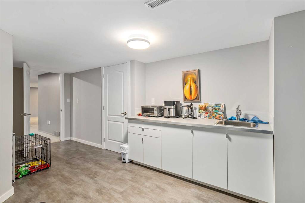 Downstairs, enjoy a massive recreation room, two additional large bedrooms, a 3-piece bathroom, and a versatile office with sink and built-in cabinetry—ideal for working from home or creative space.