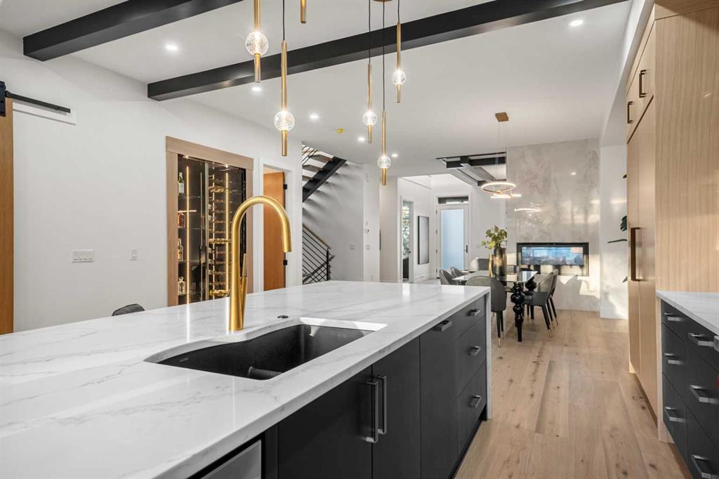 OPEN HOUSE: Sun., Feb 1: 1-3pm! DISCOVER ELEVATED LIVING! Get ready to redefine your lifestyle with this breathtaking, brand new, two-story walk-up that offers uninterrupted, jaw-dropping views of Calgary’s downtown skyline! Presented by premiere builder, Twin Real Estate Holdings, this property offers double the wow factor in the well-established SW community of Shaganappi. Imagine this…your west-facing backyard directly borders an 11 acre city park, complete with scenic pathways, tennis/basketball courts, skating/hockey rinks, dog park and an active community association that keeps the energy alive year-round. Step inside and prepare to be wowed by grand design, opulent finishes and thoughtful artistry throughout. From the soaring 10-foot vaulted ceilings to the natural light streaming through abundant walls of windows, every corner of this home exudes elegance and prestige. Picture cozy evenings in the spacious living room, anchored by a stunning double-sided gas fireplace, or hosting lavish dinners in the dining area, complete with a 48″ built-in wine wall cooler for your prized private collection. The chef-inspired kitchen is a culinary dream come true, boasting only the best: a 60″ SUB-ZERO refrigerator/freezer, a 48″ WOLF 6-burner gas cooktop with dual wall ovens, a MIELE coffee system and a BOSCH dishwasher. The walk-in butler’s servery plus pantry ensures seamless entertaining and organization, while patio sliders open to your outdoor deck—a perfect spot to soak up summer sunsets while overlooking your landscaped yard. Need space for work or play? The main floor provides two versatile flex rooms, ideal for an executive home office, craft/hobby space or a children’s playroom—tailored to suit any lifestyle. The floating staircase—framed by an elegant wall of marble tile—takes you upstairs to even more grandeur. The bonus room offers spectacular skyline views, while two additional bedrooms each feature private ensuites and walk-in closets. The pièce de rĂ©sistance is the owner’s retreat. The primary suite is a sanctuary of luxury, complete with a designer walk-in closet, a private west-facing balcony overlooking the park (sunsets and nightcaps, anyone?), and an unforgettable spa-like ensuite. This private bathroom features a double-sided gas fireplace, a freestanding black soaker tub, a separate glass steam shower, dual sinks and heated floors—a true oasis of relaxation. The lower level is designed for casual entertaining and comfort, offering a rec/media/games room and wet bar, a fourth bedroom, a den/flex/5th bedroom and a 4 piece bath. Access the attached heated double garage via the mudroom, or store your larger toys in the rear detached heated single garage, spacious enough for a pickup truck. This home is perfectly positioned to enjoy the best of Calgary—steps from the trendiest restaurants, boutique shops and social hubs of 17 Avenue, with only a 5 minute commute to downtown. Don’t miss your chance to make this incredible luxury home yours!
