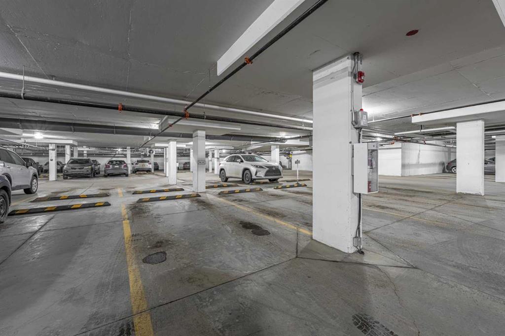 Welcome to this stunning top floor two bedroom, two bathroom condo, flooded with natural light and offering east facing views over an expansive green space. This home includes two titled underground parking stalls, wall unit air conditioning, and the quiet comfort of a well managed, low density complex. Inside, you’ll be impressed by the bright, open layout with high ceilings and a showstopping full length quartz island that comfortably seats six or more, perfect for hosting dinners or casual gatherings. The chef inspired kitchen features stainless steel appliances, an in wall oven, elegant herringbone tile backsplash, upgraded pull out cabinetry, and abundant storage to keep everything effortlessly organized. The spacious living area strikes the perfect balance. Large enough for entertaining yet cozy enough for relaxed evenings at home. The primary bedroom easily accommodates a king size bed and is complemented by a large walk-in closet and a stylish four piece ensuite featuring dual quartz vanities, modern finishes, and a beautiful herringbone tiled shower. A second bedroom offers excellent flexibility for guests or a home office, while an additional four piece bathroom is conveniently located just off the kitchen. Completing the interior is a generous in-suite laundry and storage room, large enough to double as a den or office space. Step outside through the sliding doors to your oversized balcony, where you can enjoy morning coffee and sunshine while overlooking the peaceful green space. At the heart of the complex is a unique central courtyard featuring pergolas, seating areas, manicured lawns, and community garden boxes, a true extension of your living space. The location is exceptional, just steps from South Health Campus, and surrounded by restaurants, cafés, shopping, entertainment, parks, and the world’s largest YMCA, offering swimming, fitness facilities, a public library, and learning programs. All moments from your door. Additional highlights include side by side titled underground parking, bike storage, low condo fees, and a quiet, pet-friendly (with board approval) complex with only 78 total units. This is a rare opportunity to enjoy style, space, and unbeatable convenience. A must see!