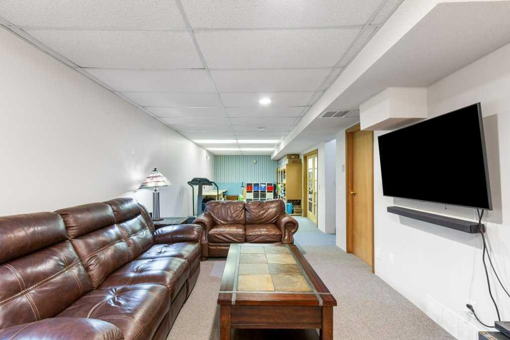 Welcome to this fully finished BUNGALOW located on a mature street in Carstairs. Offering 4 bedrooms (3 up and 1 down) and 2.5 bathrooms. You are greeting by a spacious living room that is filled with natural light, which flows effortlessly to the dining area open to the U-Shaped kitchen with CORNER PANTRY, STAINLESS STEEL appliances, and desk for added convenience and your weekly meal planning. The Primary suite is complete with a 2-piece ENSUITE and the added convenience of MAIN FLOOR LAUNDRY. There are two other generous sized bedrooms, with IKEA built-in Wardrobe systems that includes drawers. And, 4-piece bathroom on this floor makes one-level living easy. The basement offers a LARGE REC/FAMILY SPACE complete with a wet bar area, GAS FIREPLACE with flanking shelves, and a 3-piece bathroom. A massive bedroom / office with double doors completes this floor. Several rooms have seen FRESH PAINT & the Furnace & Hot Water Tank have both been replaced in the last 10 years. Outside in the SOUTH FACING BACKYARD you will find a two-tiered deck, raised garden beds, MATURE TREES/SHRUBS and loads of space to enjoy the outdoors. Features a 24×24 DOUBLE DETACHED HEATED GARAGE with RV parking potential (2 gates: 1 at the front & 1 at the back off the alley). This property is situated in an excellent location close to schools, shopping, parks & recreation. Do not miss your opportunity to own this great property located on a sought after street in this great community. Engineers Report is available upon request.