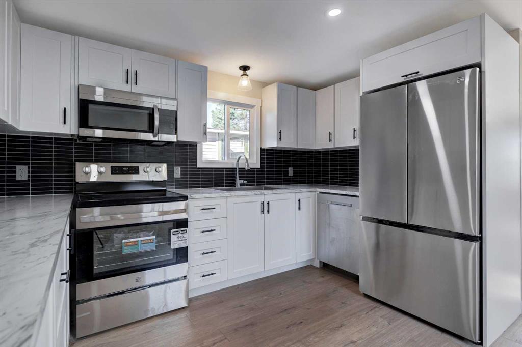 Don’t wait to view this property – you won’t be disappointed! Fully renovated 2 bed, 2 bath mobile home in the conveniently located Mountview Mobile Home Park. FULLY RENOVATED WITH ALL OF THE BIG TICKET ITEMS DONE! WINDOWS, FURNACE and newer HWT, NEW PEX WATERLINES (installed in-floor), KITCHEN, BATHROOMS, DOORS, BASE AND CASE, SIDING, SKIRTING, DECKS, DRYWALL THROUGHOUT, FLAT PAINTED CEILING. This home has a great layout with a large, sunny living room, spacious kitchen with brand new kitchen cupboards, new modern laminate countertops, pot lights, tiled backsplash, new stainless steel appliances and a good size eating area. You will find Laminate flooring throughout with Vinyl plank in the bathrooms. The home is painted in a modern color palette designed to suit any decor, has new lighting throughout, a spacious hallway leading to the large 4-pce bath with new tub, toilet and vanity. A redesigned floor plan includes a separate laundry area and a 3 piece bath with a storage cabinet, toilet and vanity, along with a stacked washer and dryer. The large living brings in lots of light.