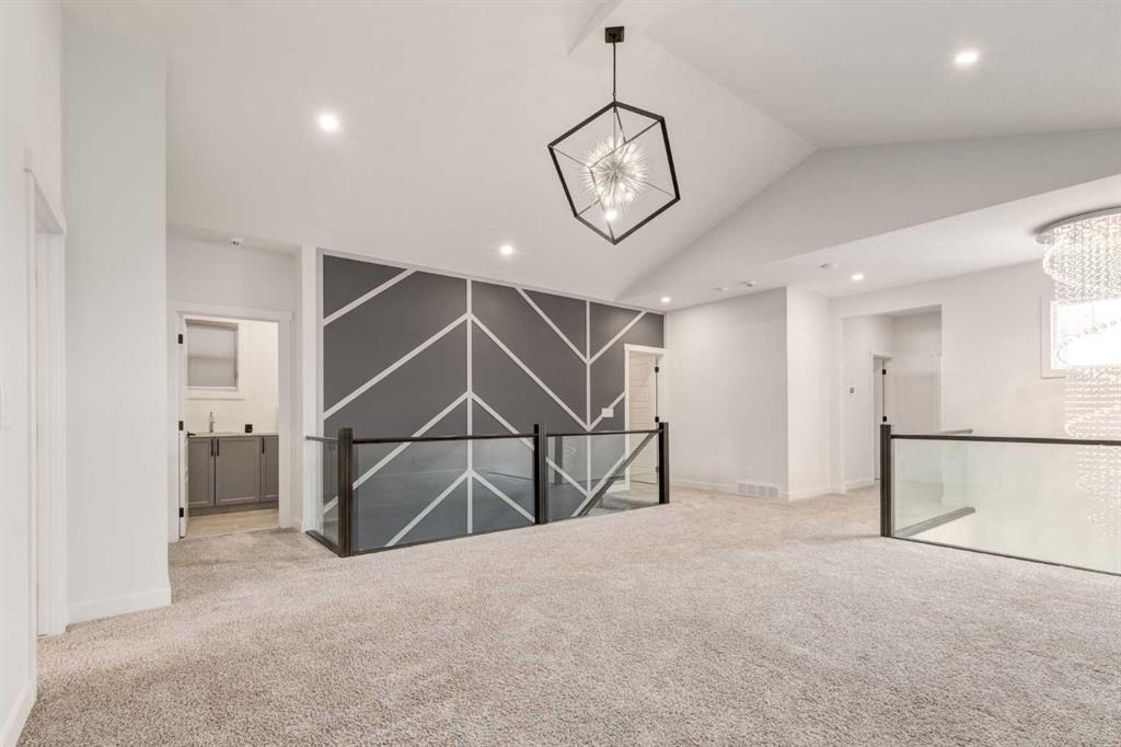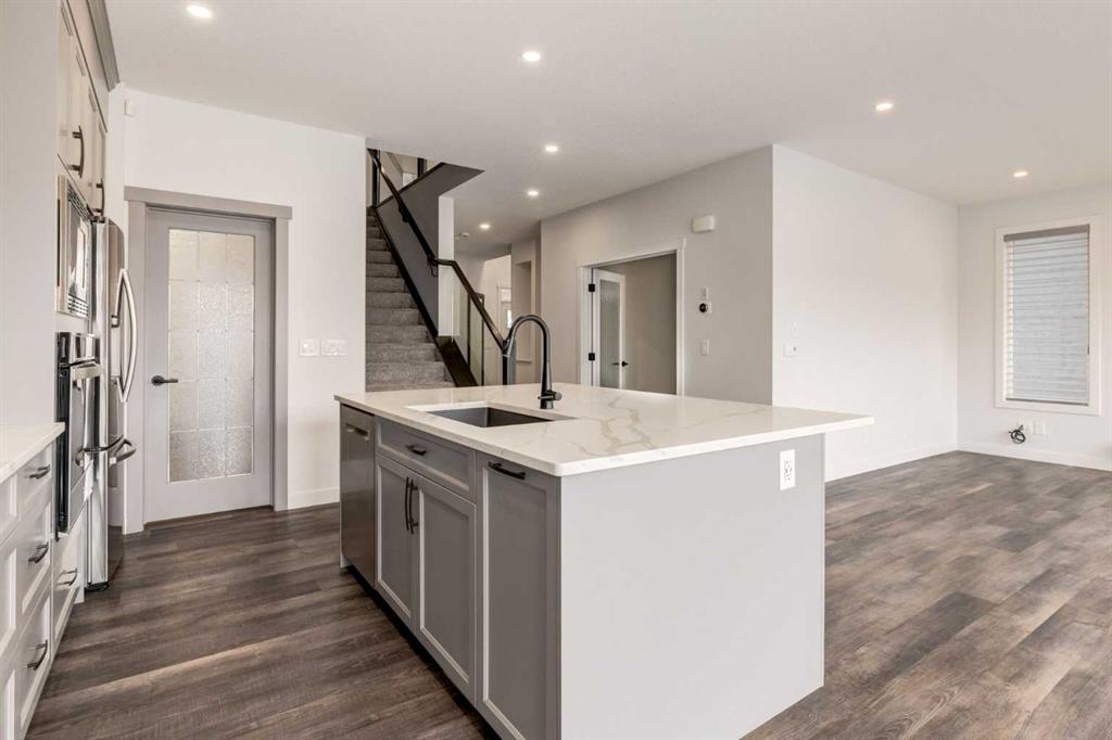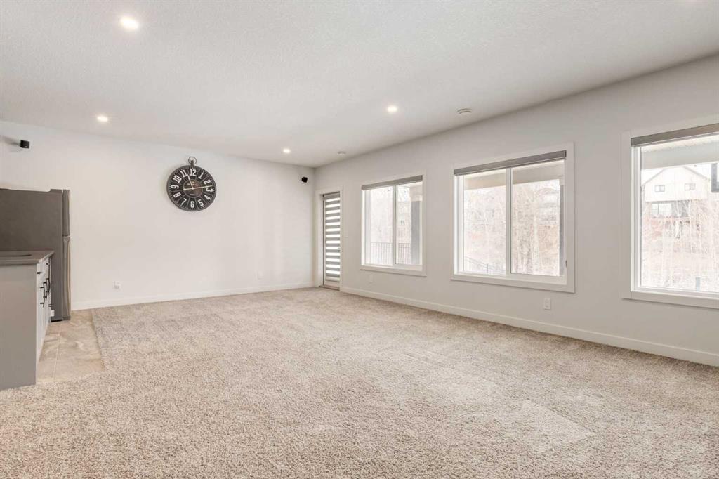OPEN HOUSE SAT APR 4 FR 1-3. Welcome to your dream home in the heart of Cranston’s Riverstone backing onto a forested green belt and pathway leading to the Tree Park. Offering 3,653 SF of developed living space with 3+1 bedroom, 3.5 bathrooms, a walk-out basement and a rare over-sized double garage (20’x25′). Enter into a large foyer with soaring 2 storey height ceilings where the main floor is flooded with natural light from the wall to wall windows. The chef’s kitchen features high end stainless steel appliances (including a gas cooktop and a smart refridgerator), large center island with eat bar, quartz countertops, cabinetry extended into dining area and a walk-through pantry. Designer lighting and green space views highlight the dining space with patio sliders that lead to the expansive 28’x12′ maintenance free deck encouraging an easy indoor/outdoor lifestyle. The living room also enjoys backyard views and a cozy gas fireplace. A home office, powder room and mud room complete this space. Upstairs you will find a grand vaulted bonus room, conveniently located laundry room and a primary bedroom with walk-in closet and a spa-like ensuite boasting dual vanities, a deep soaker tub and an oversized shower. Both addition bedrooms have walk-in closets and share the 5-piece bathroom. Gather, entertain and unwind in the developed basement with a full service wet bar, family room with a second fireplace and walkout access to the paved and covered 28’x12′ patio, 4th bedroom and a 4 piece bathroom. You will LOVE summer entertaining in your maintenance free backyard with artificial turf and dedicated firepit area. Upgrades not be overlooked include central AC, sound proof furnace room with 2 furnaces for dual stage, 5.1 channel home theater wiring, wide internet socket in every room, high-end under lay in basement carpet and painted walls in the garage. Outdoor enthusiasts will love this prime location with miles of riverside pathways, world renowned fishing in the Bow River and community HOA gives access to a private clubhouse with sports courts, spray park, skating rink and playground. Mere minutes to an array of restaurants, shopping, YMCA and Seton Hospital…do not miss this opportunity and book your showing today!