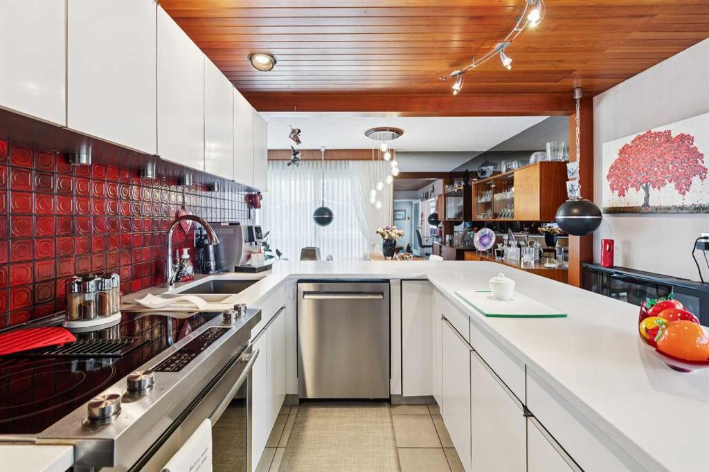 Welcome to this impeccably maintained bungalow in Calgary’s Southwood community—where timeless mid-century design meets thoughtful modern updates and truly exceptional outdoor living. Set on a prominent corner lot, this 1,100 sq ft home has been lovingly cared for by the same owner for over 40 years. The pride of ownership is undeniable, beginning with the extraordinary landscaping—lush, layered gardens, mature trees, and beautifully designed patio spaces that create a private, sun-soaked retreat in the south-facing backyard. Inside, the home offers a rare and intentional blend of preserved mid-century character and modern comfort. Rich wood ceilings, clean architectural lines, and statement design elements have been carefully maintained, while key updates—including the kitchen, flooring, and windows —enhance everyday living without compromising the home’s original charm. The kitchen is both functional and striking, featuring a large island, updated cabinetry, quartz counters and a bold design aesthetic that connects seamlessly to the dining and living spaces—perfect for gathering and entertaining. The main floor features three bedrooms, including a primary suite with a 2-piece ensuite and a large picture window overlooking the backyard oasis—bringing the outdoors in. The fully developed basement expands your living space with a massive recreation room, a 3-piece bathroom, and a second full kitchen—ideal for canning, preserving, or hosting larger gatherings. Ample storage is found throughout. Additional updates include a furnace and central A/C (2015), offering year-round comfort. Located with convenient access to major routes, this home remains remarkably quiet and peaceful—both inside and in the garden—offering a unique balance of accessibility and tranquility. A rare opportunity to own a home where design, care, and outdoor beauty come together in one of Calgary’ established southwest communities.
