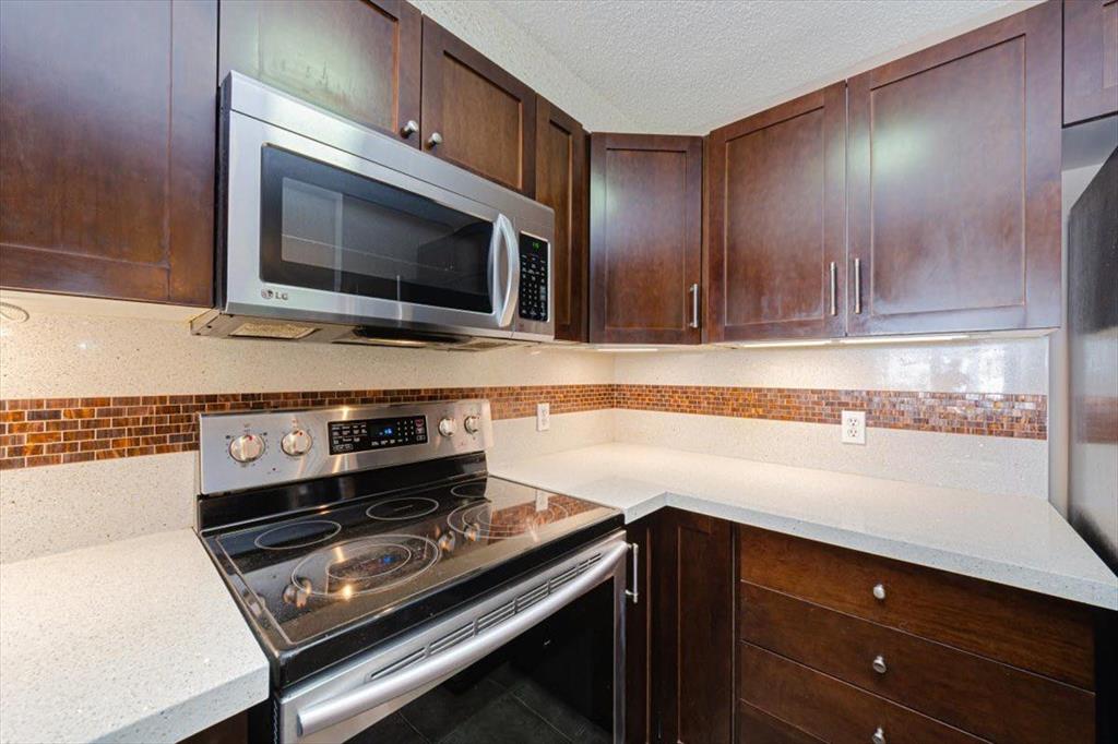 Welcome to this stylish top-floor condo in the highly desirable community of Royal Oak in NW Calgary. This beautiful updated two bedroom residence features a bright open concept, open-concept layout designed for comfortable modern living. The kitchen showcases stainless steel appliances, striking recycled glass countertops with a matching backsplash, and elegant under-cabinet lighting. Hickory laminate flooring flows throughout the space. Step outside to the generously sized covered balcony, where you can relax and enjoy the peaceful, quite views. This well-managed building also offers the convenience of a titled indoor heated parking stall and dedicated storage locker. A rare opportunity to own a penthouse level condo in an exceptional location of the building-perfect for professionals, first-time buyers, or investors alike. Great location, walk to ammenities and the YMCA for sport enthusiasts.