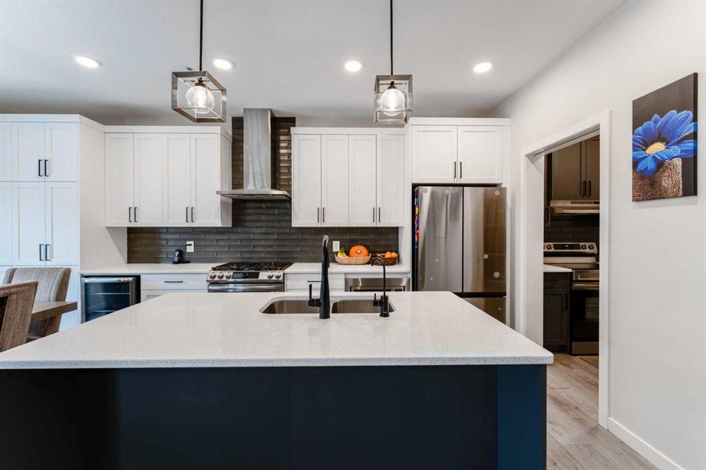 Step inside to a light-filled main floor with a generous foyer, airy great room, and a dining area that easily hosts family and friends. The kitchen is the heart of the home, featuring sleek cabinetry, a center island with seating, quartz counters, and stainless steel appliances (including a bar fridge). A convenient full 3pc bath, main floor bedroom and attached garage entry complete the main level.