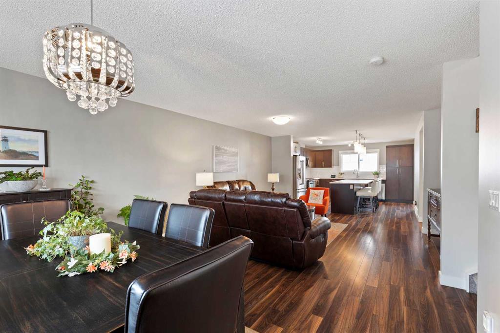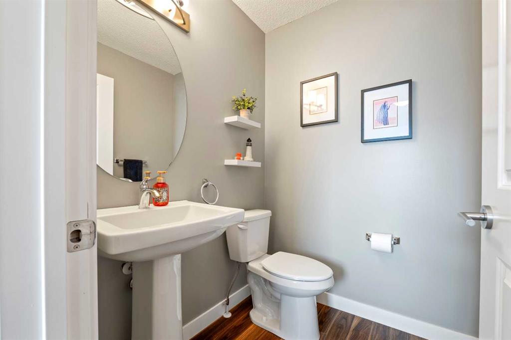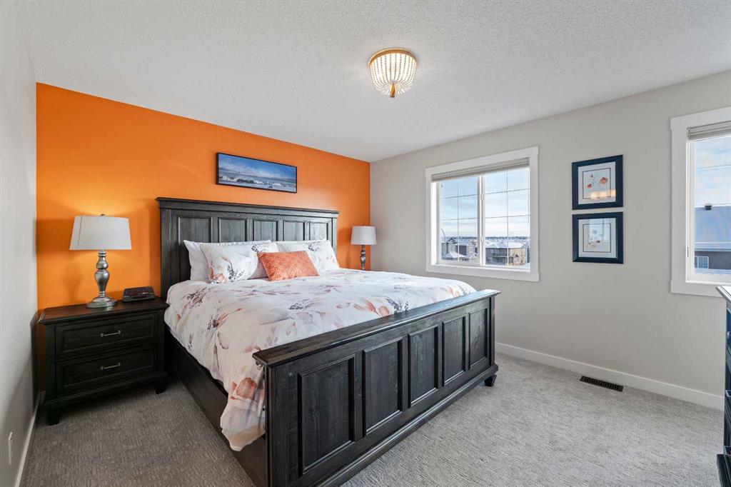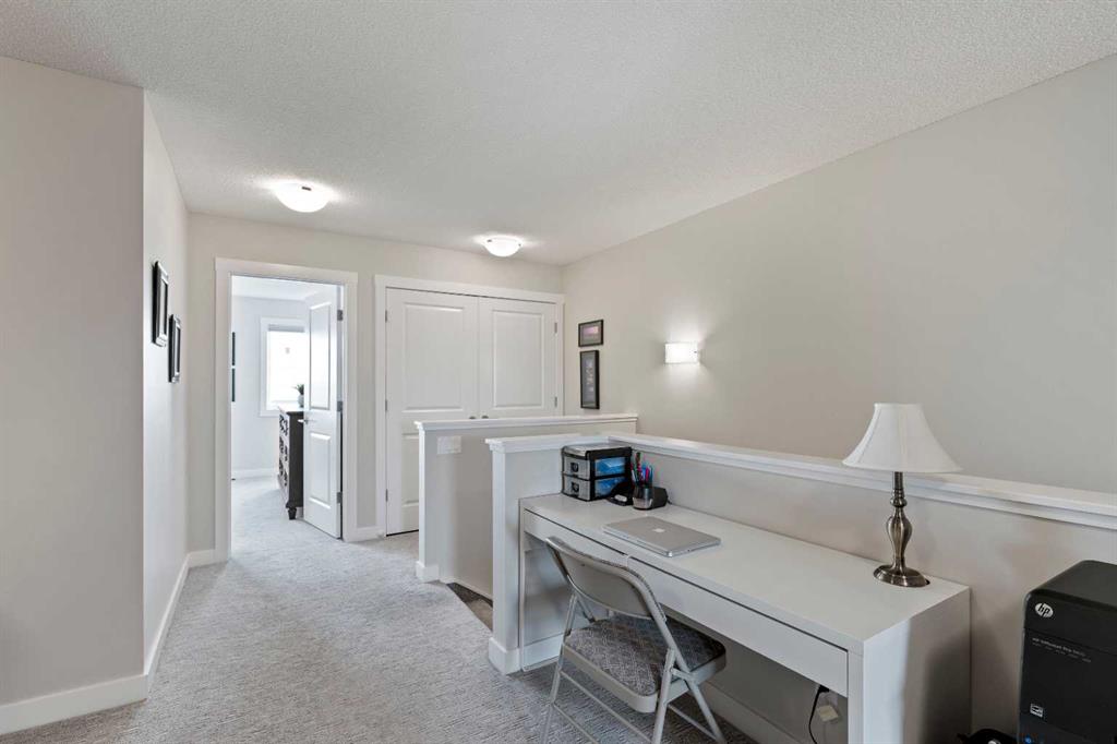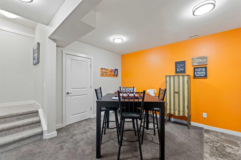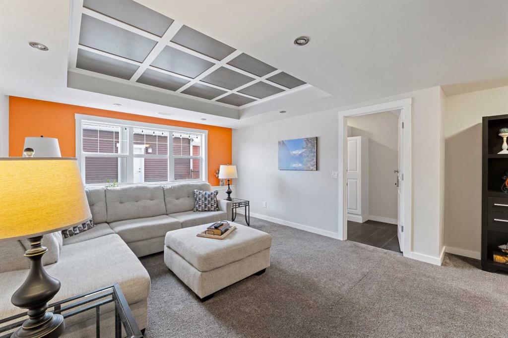 Welcome to 143 Baysprings Terrace! This Brookside-built home with a fully developed walkout basement is sure to impress from the moment you arrive. As you approach, you’re greeted by a spacious west-facing porch — the perfect place to unwind and enjoy beautiful sunsets after a long day. Step inside to discover soaring 9-foot ceilings, an abundance of natural light, and upgraded laminate flooring throughout the main level. The spacious dining area flows seamlessly into the inviting living room and continues into the chef-inspired kitchen, complete with quartz countertops, a massive central island, coffee bar, and ample cabinetry featuring soft-close drawers. A convenient two-piece bathroom and access to the upper deck with a gas line complete the main floor. Upstairs, you’ll find a thoughtfully designed layout featuring two primary bedrooms, each with its own walk-in closet and private four-piece ensuite. A generous bonus/family room with a dedicated computer station separates the bedrooms, while a conveniently located laundry area adds everyday functionality. The fully finished walkout basement is designed for entertaining, offering two separate games and TV areas, custom coffered ceilings, and a stylish dry bar. A dedicated storage room and functional mudroom with built-in storage lead to your private backyard oasis, complete with low-maintenance artificial turf, full fencing, and an additional covered entertaining space. The yard provides access to the oversized double detached garage, offering plenty of room for two vehicles. Additional features include central air conditioning and underground sprinklers. Situated in one of Airdrie’s best self-managed townhouse complexes, this home offers access to nearby paved waterfront walking paths, summer paddleboarding, and winter skating or hockey on the Canals. Conveniently located within walking distance to parks, playgrounds, Nose Creek School (K–4), shopping, dining, and medical offices. Book your showing today!