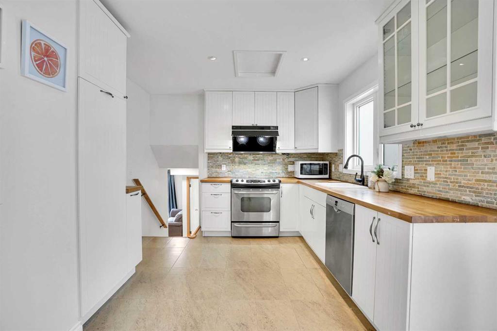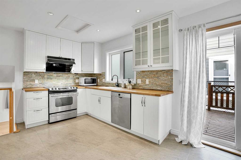 The main floor features vaulted ceilings in the living and dining areas that create a bright, open space perfect for family gathering. Upgraded kitchen is equipped with high-quality stainless steel appliances ideal for the chef in the family. Upstairs, the master bedroom is spacious with an updated en-suite bathroom and walk-in closet. A second sunny bedroom and an additional full bathroom completes the upper level.