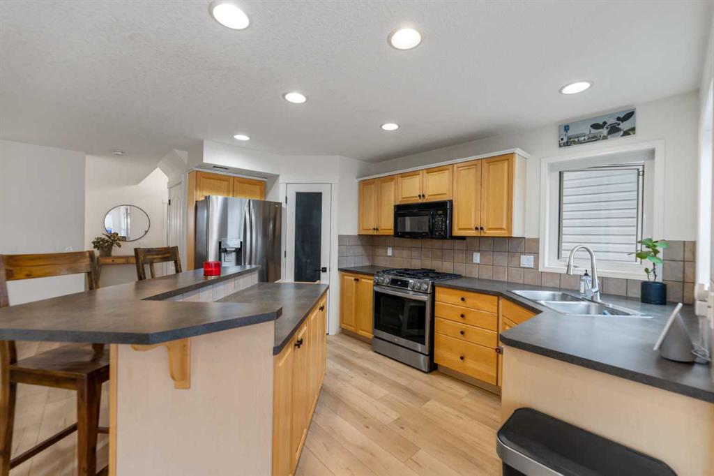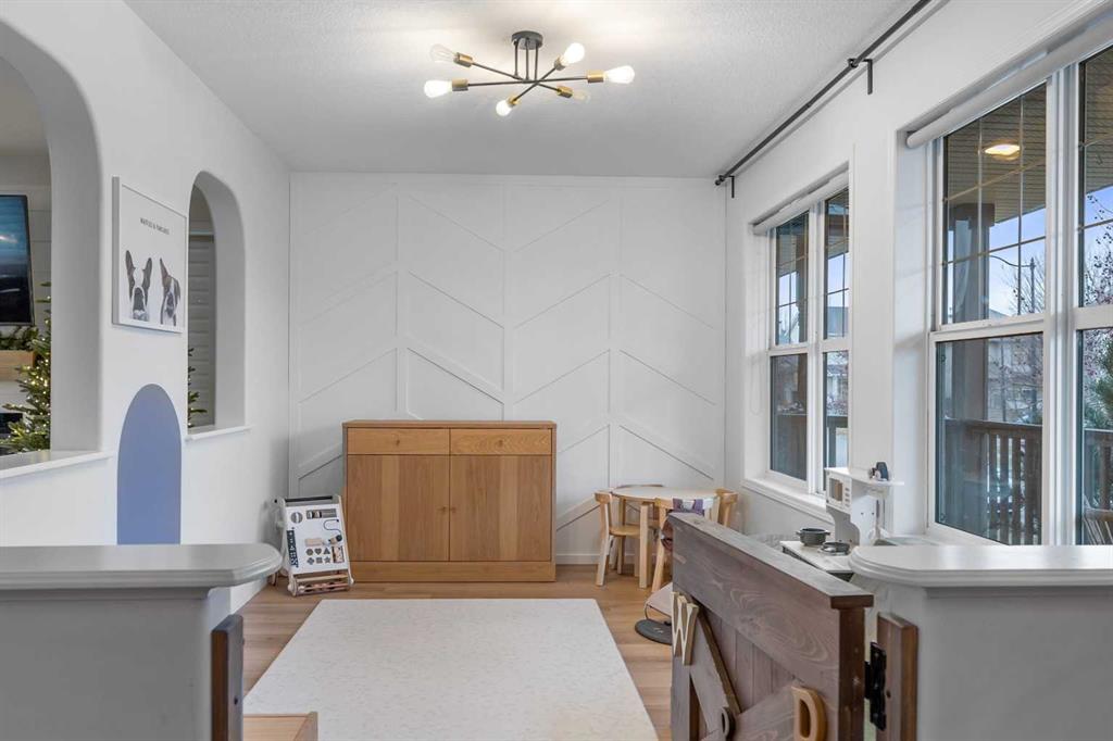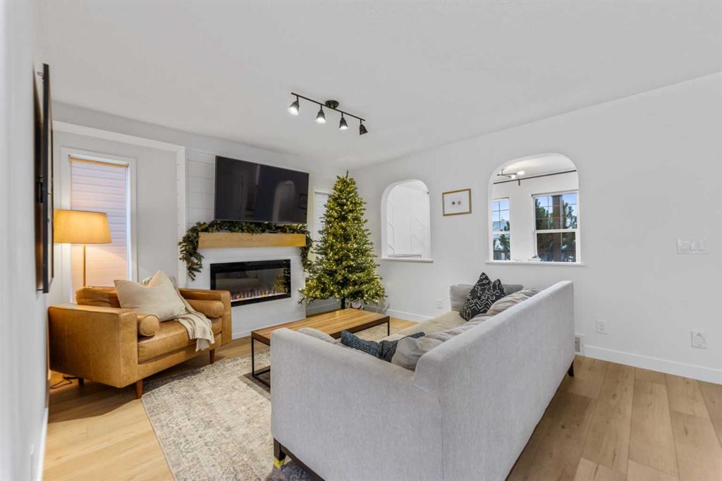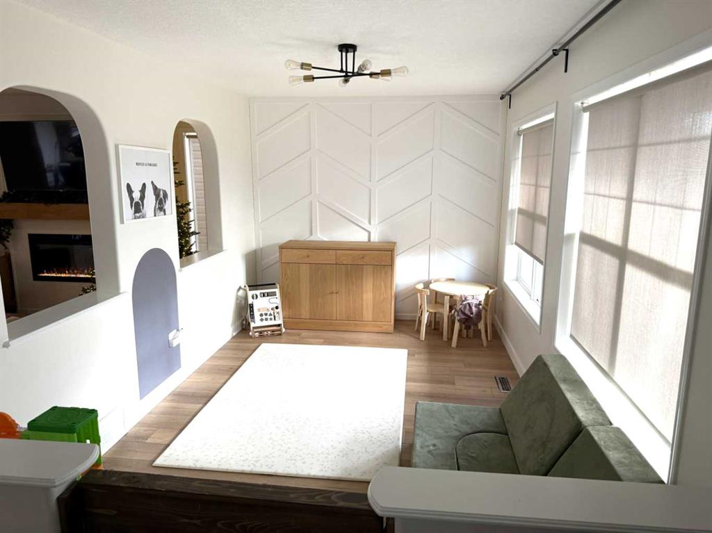 Full of THOUGHTFUL upgrades and TIMELESS style, this 2 Storey home welcomes you with warm-toned Luxury Vinyl Plank (LVP) flooring, UPGRADED railing, MODERN lighting, and a versatile front FLEX space accented by a CONTEMPORARY FEATURE WALL – perfect as a FUN playroom, home office, formal dining area, or anything YOUR LIFESTYLE needs. The living room offers a CHALET-inspired feel with its shiplap details, fireplace, and plush furniture you will want to RELAX and spend time in. As you venture through the home, you will see how WELL the owners have CARED for it.