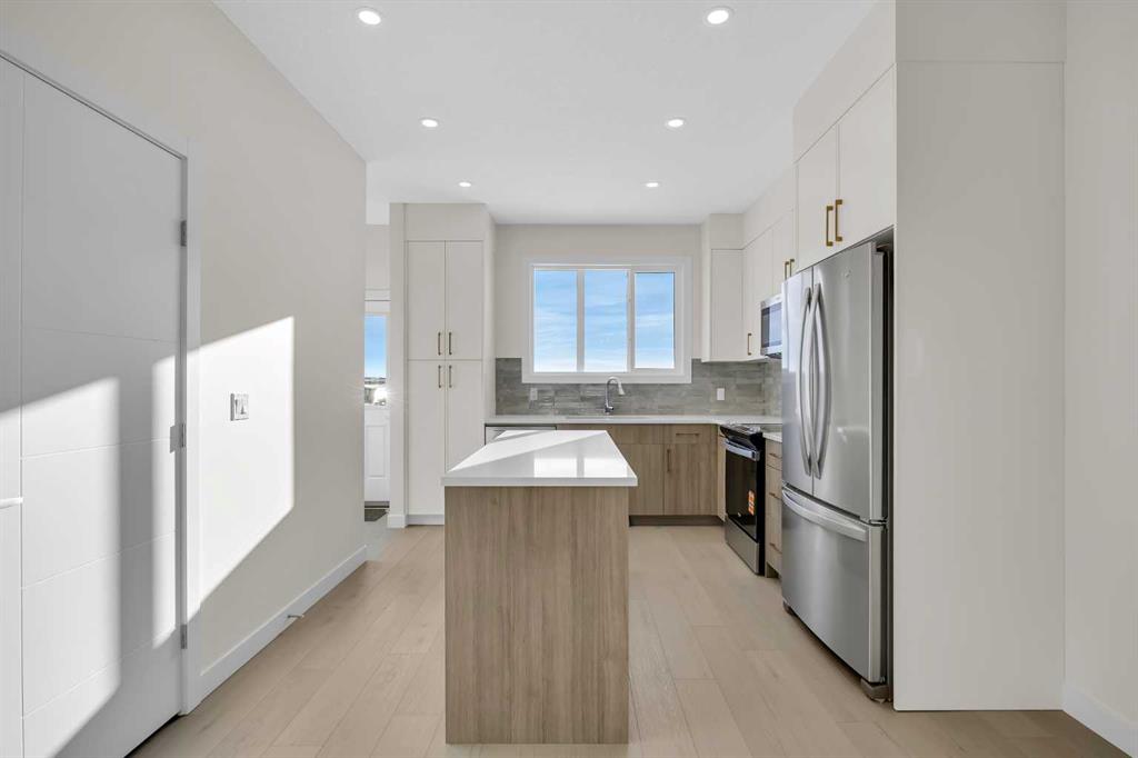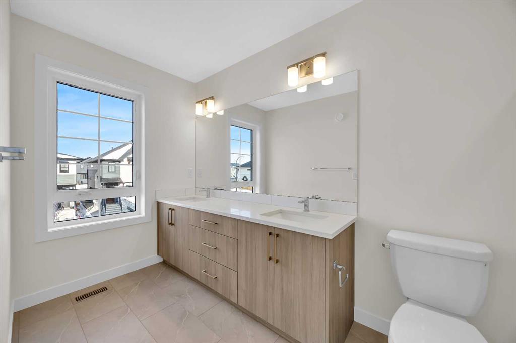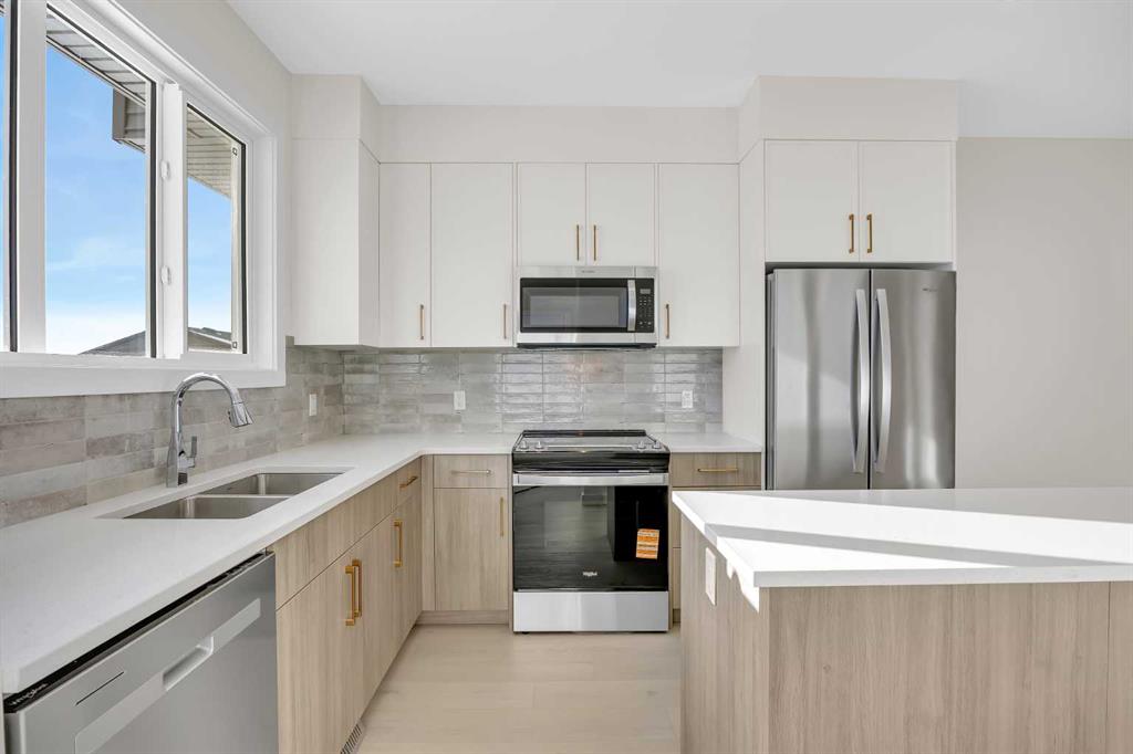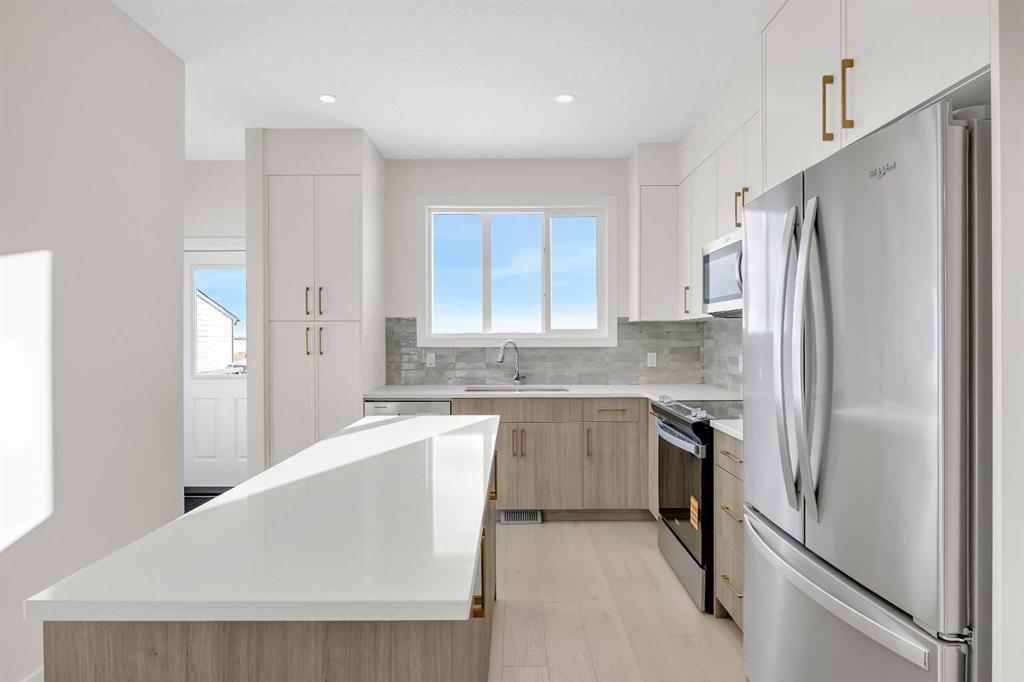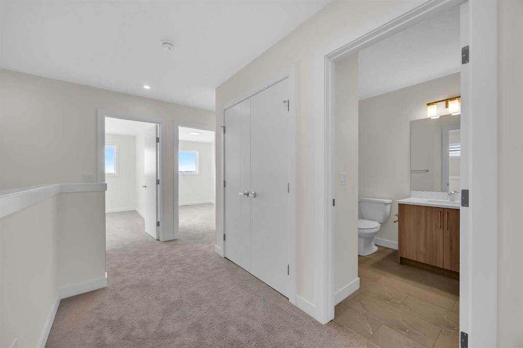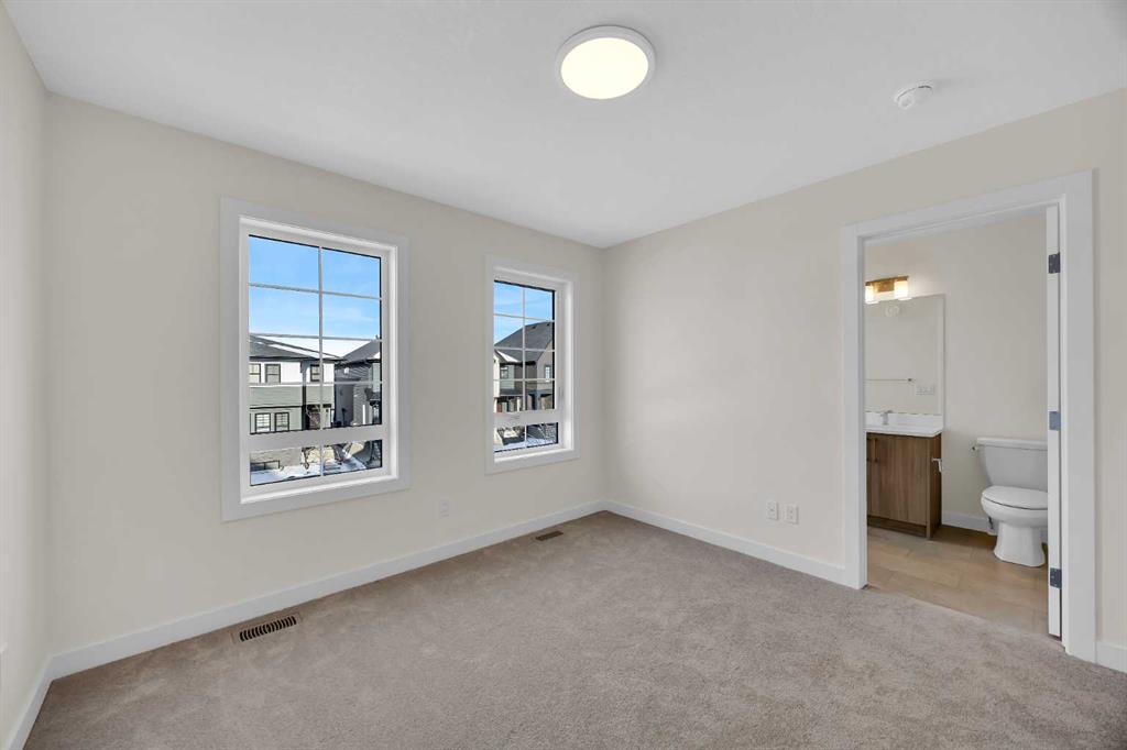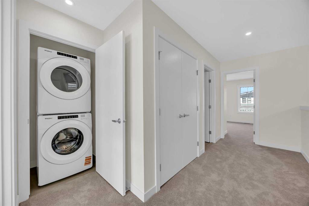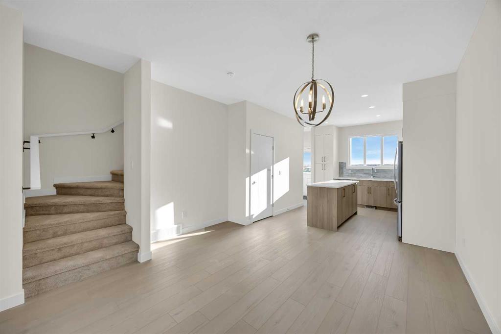 Welcome to the Charlotte by Partners Homes, a thoughtfully designed paired home offering a functional layout and well-selected finishes in the southeast Calgary community of Logan Landing. The main floor features 9’ ceilings and an open-concept design that balances everyday comfort with practical living. The rear kitchen is both efficient and inviting, finished with upgraded MDF cabinetry, quartz countertops, a custom backsplash, and a central island. A stainless steel appliance package, including an upgraded range, completes the space. Bright dining and living areas at the front of the home provide excellent natural light and a welcoming setting for daily living. Upstairs, the primary bedroom includes a walk-in closet and a private ensuite with dual sinks and a walk-in shower. Two additional bedrooms, a full bathroom, and convenient upper-floor laundry complete the second level. The basement offers future development potential and includes two egress windows and rough-in plumbing. A gravel parking pad with alley access is located at the rear of the home. Logan Landing is a growing community surrounded by natural features, with pathways connecting to the Bow River, expansive open space, parks, playgrounds, birdwatching areas, fishing spots, and a community stormwater pond with surrounding amenities. This is an excellent opportunity to own a well-finished home in one of Calgary’s newest southeast communities.