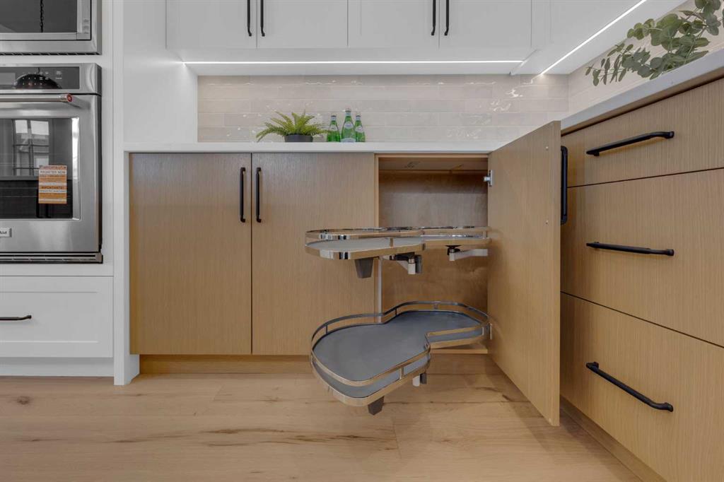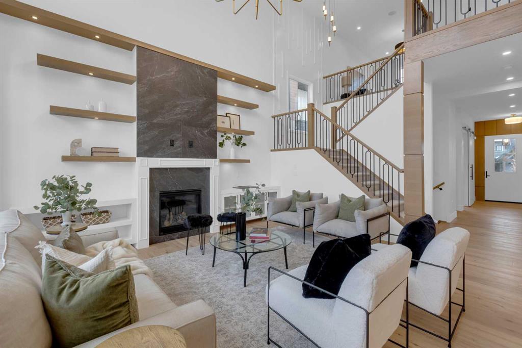 The main floor features 10′ ceilings and engineered hardwood throughout, creating a bright and upscale feel. You will find a private front office, a spacious family room with built-in shelving, a cozy fireplace, and an impressive open-to-above design. An elegant dining area that opens onto a large deck with a BBQ gas line—perfect for entertaining. The chef’s kitchen is truly a dream, offering built-in appliances, a large island, quartz countertops, and plenty of cabinetry. A convenient mudroom off the garage and a stylish powder room complete this level.