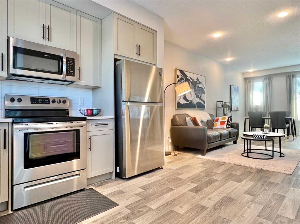 Welcome to this beautifully maintained 1,224 sq ft, 3-bedroom, 2.5-bath CONDO FEE-FREE townhouse in the highly convenient Carrington community. Just minutes from the Calgary International Airport, this former show home offers thoughtful upgrades and a functional layout that makes everyday living feel effortless and enjoyable.