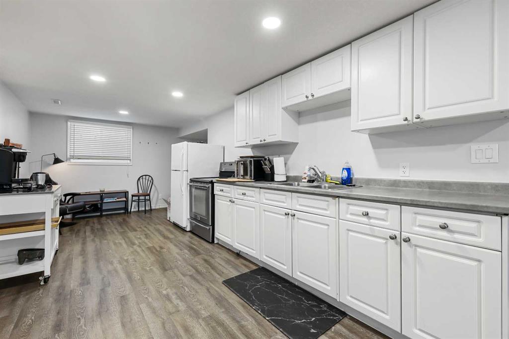 This 1187 sq ft bungalow with a legal secondary suite, as well as detached double garage is situated on a 50 ft wide lot on a quiet street in close-in Fairview. 3 bedrooms up and a one bedroom City of Calgary Legal suite downstairs, this home is ideal for a young couple needing income from a secondary suite or an investor looking for an affordable rental property. The basement was redone in 2019 as well as laminate floors on the main level. The back window as well as the basement windows have been replaced. The upper kitchen cabinets have been removed, the new owner can design the kitchen to their taste and design. Basement suite is rented of $1225 per month, I year lease until Oct 1, 2026. Tenant pays 40% of the utilities.