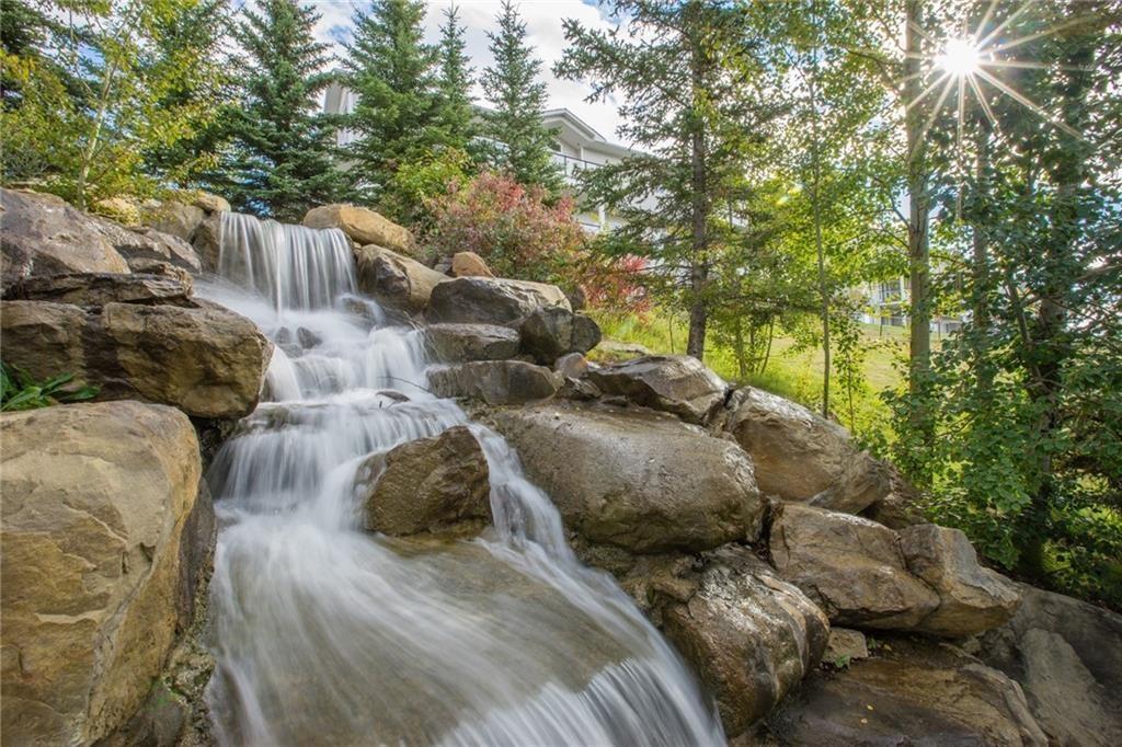 **OPEN HOUSE: 2-4 PM SATURDAY, MAR 15, 2026 ** LOCATION, LOCATION, LOCATION!! It is RARE to see one of these units on the market.FABULOUS, PANORAMIC, UNOBSTRUCTED MOUNTAIN VIEWS from all 3 levels! BACKING GREEN SPACE WITH POND AND FOUNTAIN. SPACIOUS over 2000 sqft living space. Main floor features a powder room, den, living room with corner gas fireplace, large kitchen with plenty of cabinets and counter space, corner pantry & raised eating bar 9′ ceilings.Southwest facing deck with gas BBQ hook-up & spectacular mountain view. Upper floor includes laundry & 2 master suites. The main MBR has a deck with spectacular mountain view, 4 pce ensuit with tub, separate shower and walk-in closet. Second MBR features a 4 pce ensuite & walk-in closet. Walk-out basement is fully finished with a large family room 3nd bedroom and a full bath. Double attached garage. Low condo fees, walking distance to LRT, minutes to YMCA, shopping and other amenities. Access to fitness facilities, tennis courts, movie theatre.Don’t Hesitate on this Very Exclusive Location home.