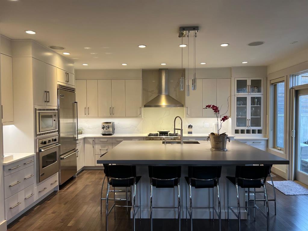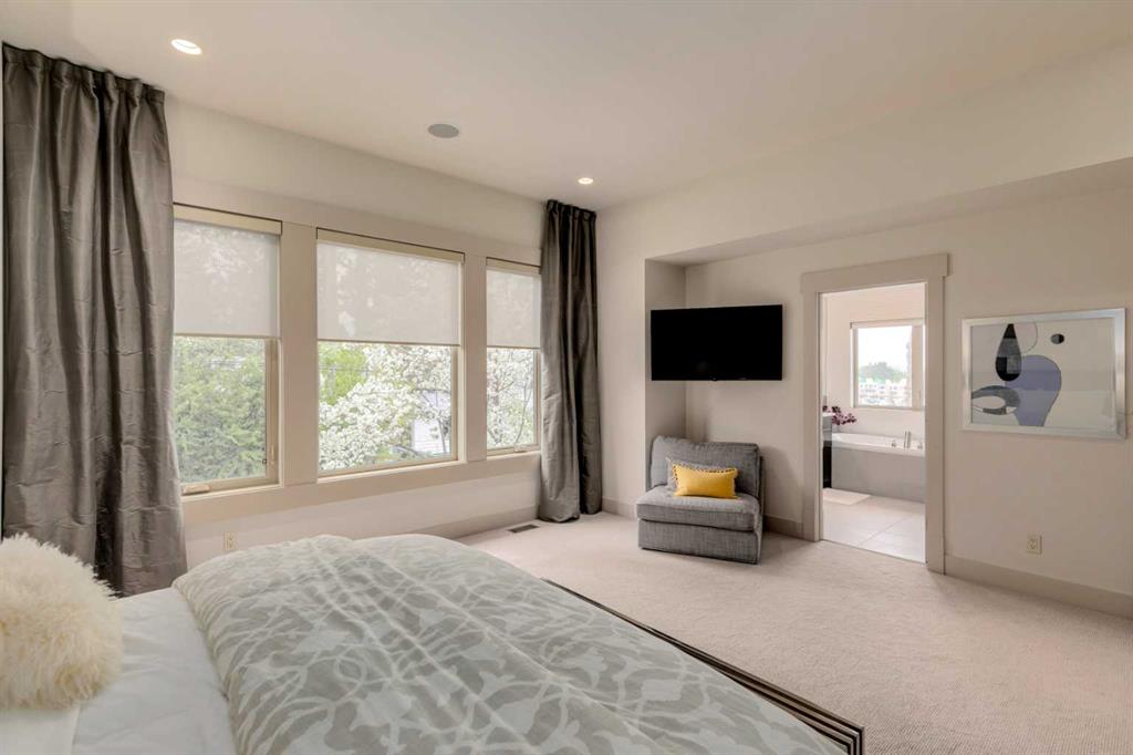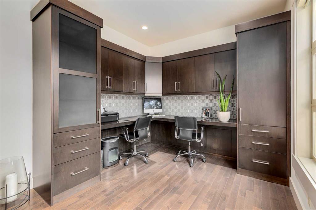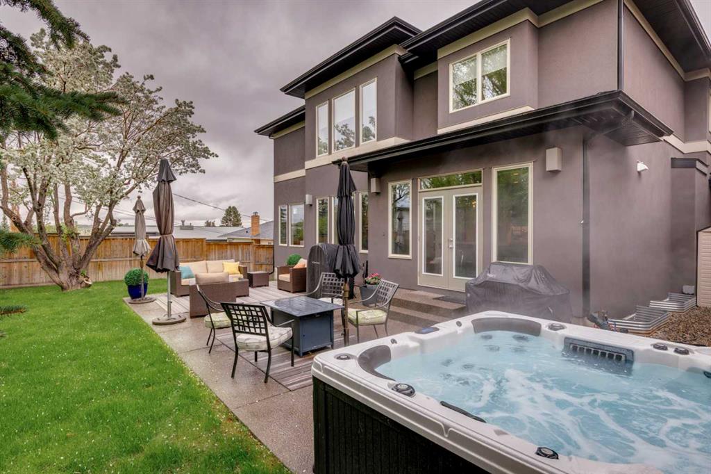 *Open House Saturday November 15, 2025 from 1:00 – 3:30* This beautifully designed home blends modern elegance, warm functionality, and views of the downtown skyline, offering the perfect balance between urban energy and residential calm. The location is unmatched, just minutes to the city centre yet tucked in a residential enclave with tree-lined streets and a true neighbourhood feel. Inside, a light-filled foyer leads into sprawling open-concept living spaces where 9’ high ceilings and large windows allow sunlight to pour through the main floor. The heart of the home is the chef-inspired kitchen, featuring quartz counters, 6-burner gas cooktop, sleek cabinetry, generous storage, and a large central island with breakfast bar that invites connection. Adjacent is a dedicated dining area with a built-in bar for effortless hosting, and an impressive living room warmed by a contemporary linear gas fireplace with a statement making concrete mantle. Whether it’s a casual weeknight with kids or a lively dinner party with friends, this layout rises to the occasion. A private office with French doors and built-in workstations makes work-from-home days a breeze. The large walk-in pantry and mudroom keep everyday life organized and stress free. Upstairs, the library opens onto a secluded balcony with spectacular views, made for quiet reflection and a morning coffee. A welcoming bonus room provides a spot for kids to play or the whole family to reconnect. The primary bedroom is a serene retreat offering ample space for a seating area, a large walk-in closet, and an ensuite that blends function and comfort with double sinks, a soaking tub, and an oversized shower. Two additional bedrooms with window benches and walk-in closets, a dual-sink bathroom, and a laundry room complete the upper level. Downstairs, the fully developed basement offers a recreation room ideal for movie nights or entertaining complete with a projector, screen, and a wet bar with wine fridge. Two more bedrooms, a full bathroom, and a wine/storage room complete this level. Outside, the west-facing backyard sets the stage for unwinding, with a large patio and a hot tub bordered by mature trees and garden beds. An attached double garage adds convenience to this impeccably designed home. Located in one of Calgary’s most historic and desirable city-centre neighbourhoods, this home offers quick access to downtown, vibrant 17th Avenue, the LRT, Shaganappi Golf Course, off-leash dog parks, playgrounds, and scenic walking paths. With its blend of city access and quiet residential charm, this home is crafted for elevated family living, where life is easy, space is generous, and your Scarboro/Sunalta West story begins.