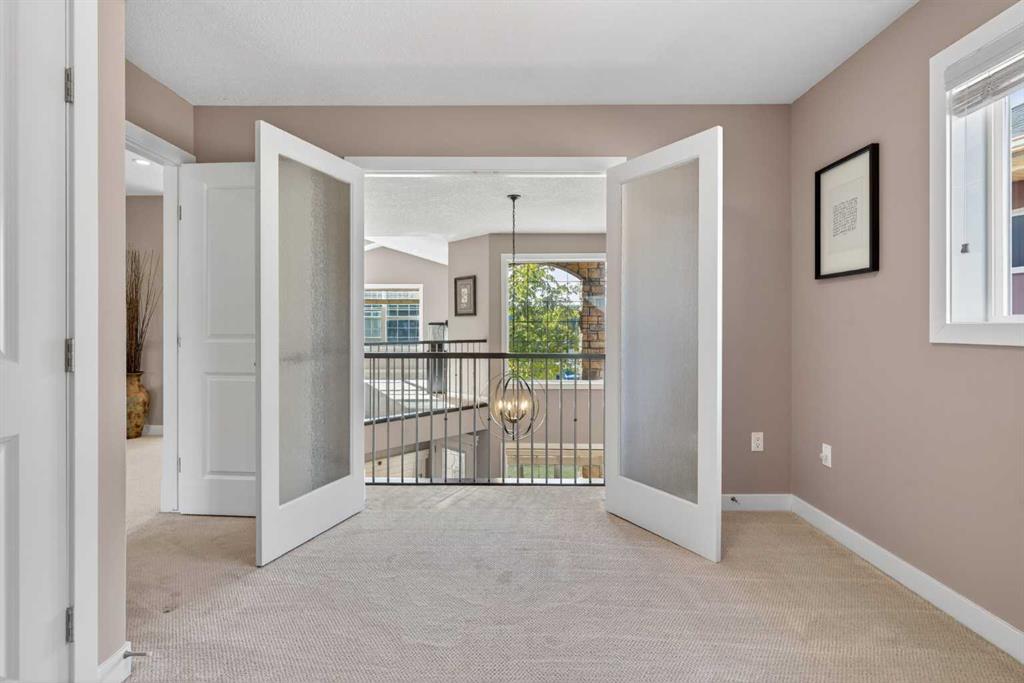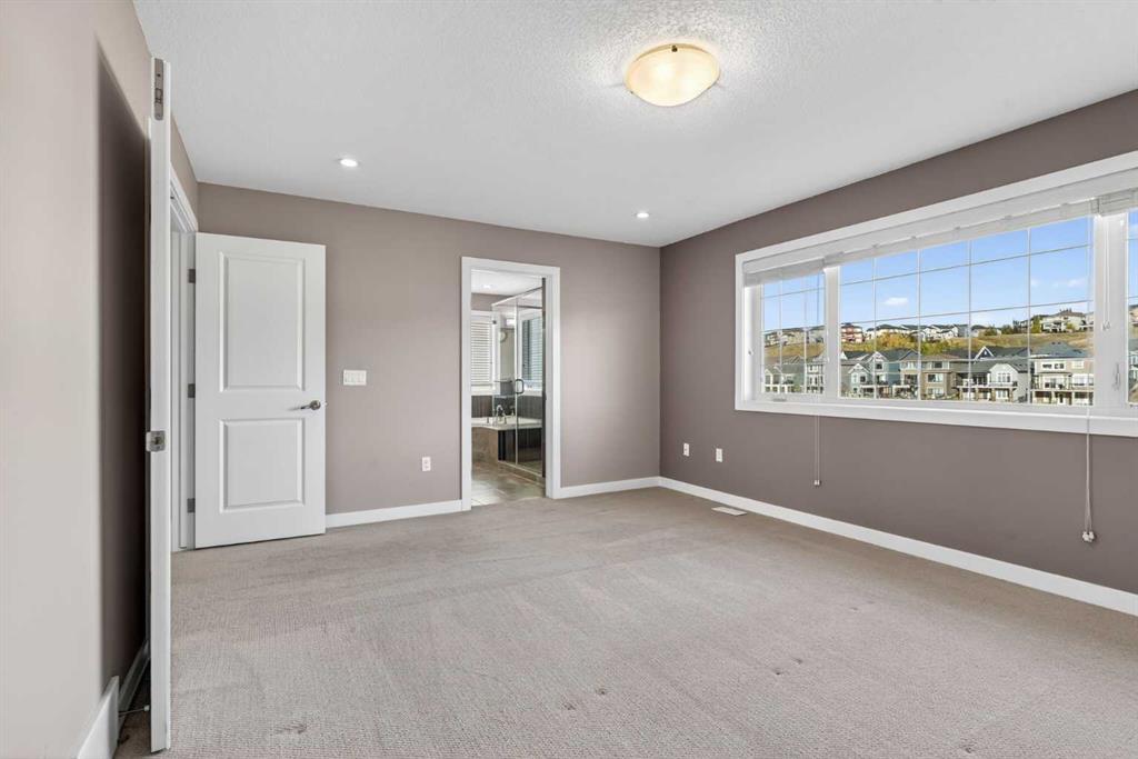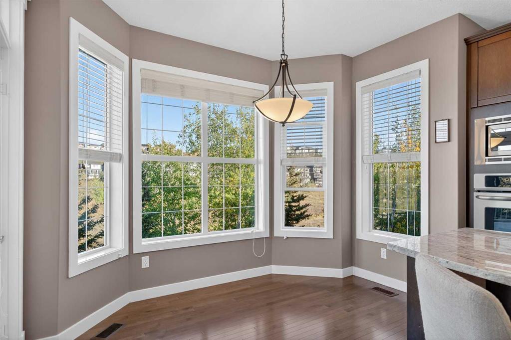 OPEN HOUSE, Sunday, Nov 9, 2:00pm-4:00pm. This stunning two-story residence offers over 3,800 sq. ft. of beautifully developed living space, perfectly designed for comfort and functionality. Backing onto Nose Creek – a beautiful tranquil natural setting, the east-facing backyard welcomes peaceful morning sunshine and provides a serene backdrop to everyday living. Step inside and be greeted by soaring ceilings and an abundance of natural light that enhances the elegant open layout. The main floor features a formal living and dining room—ideal for gatherings—along with a versatile flex room that can be used as a home office or study. The gourmet kitchen is a true showpiece, featuring granite countertops, a centre island, and stainless steel built-in appliances. The living room is warm and inviting, anchored by a cozy fireplace framed with beautiful built-in shelving and complemented by rich hardwood floors. Upstairs, the expansive primary suite offers a luxurious retreat with a spa-inspired ensuite, dual sinks, and a spacious walk-in closet. Two additional bedrooms and a large bonus room provide plenty of space for family and relaxation.