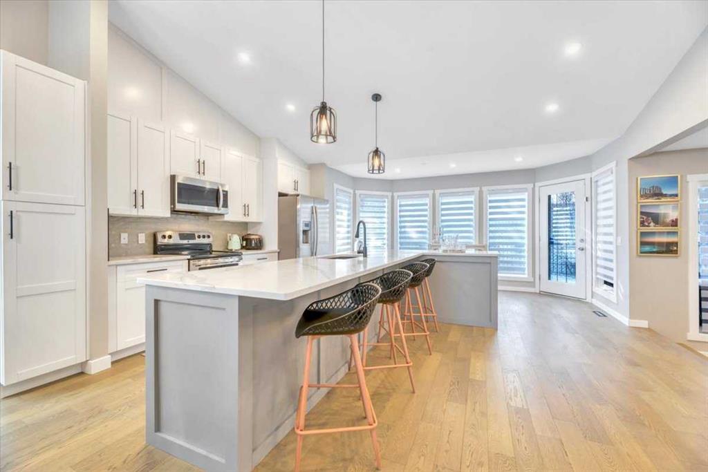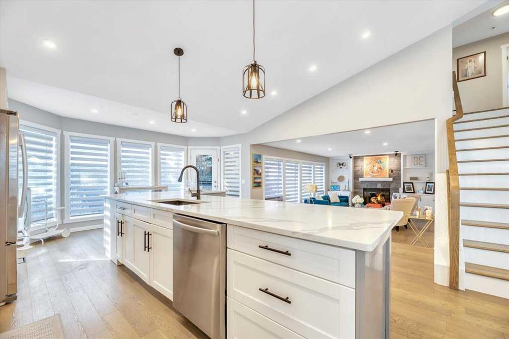 Let’s start outside. One of the best features of this home is the view both front and back. At the front, you’re greeted with beautiful views of downtown Calgary. At the back, your backyard is perfectly set up for summer hangouts or cozy fall and winter nights, all while enjoying that same skyline. You get the view, but you’re tucked away from the noise and busyness.