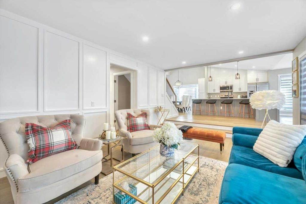 A few steps down, and this is where the home really opens up, a massive family room designed for connection, laughter, and everyday living. With elegant wall detailing and built-ins, it’s ready for you to move in and make it your own. Just off this space is a private office ideal for working from home or creating a quiet corner just for you.